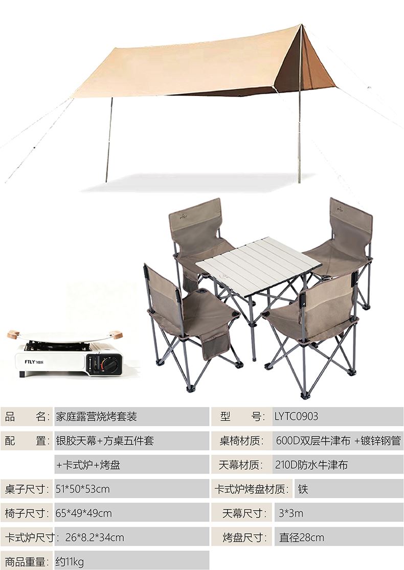 FTLY飞图乐家庭露营烧烤套装(天幕+折叠桌椅+卡式炉烤盘)
