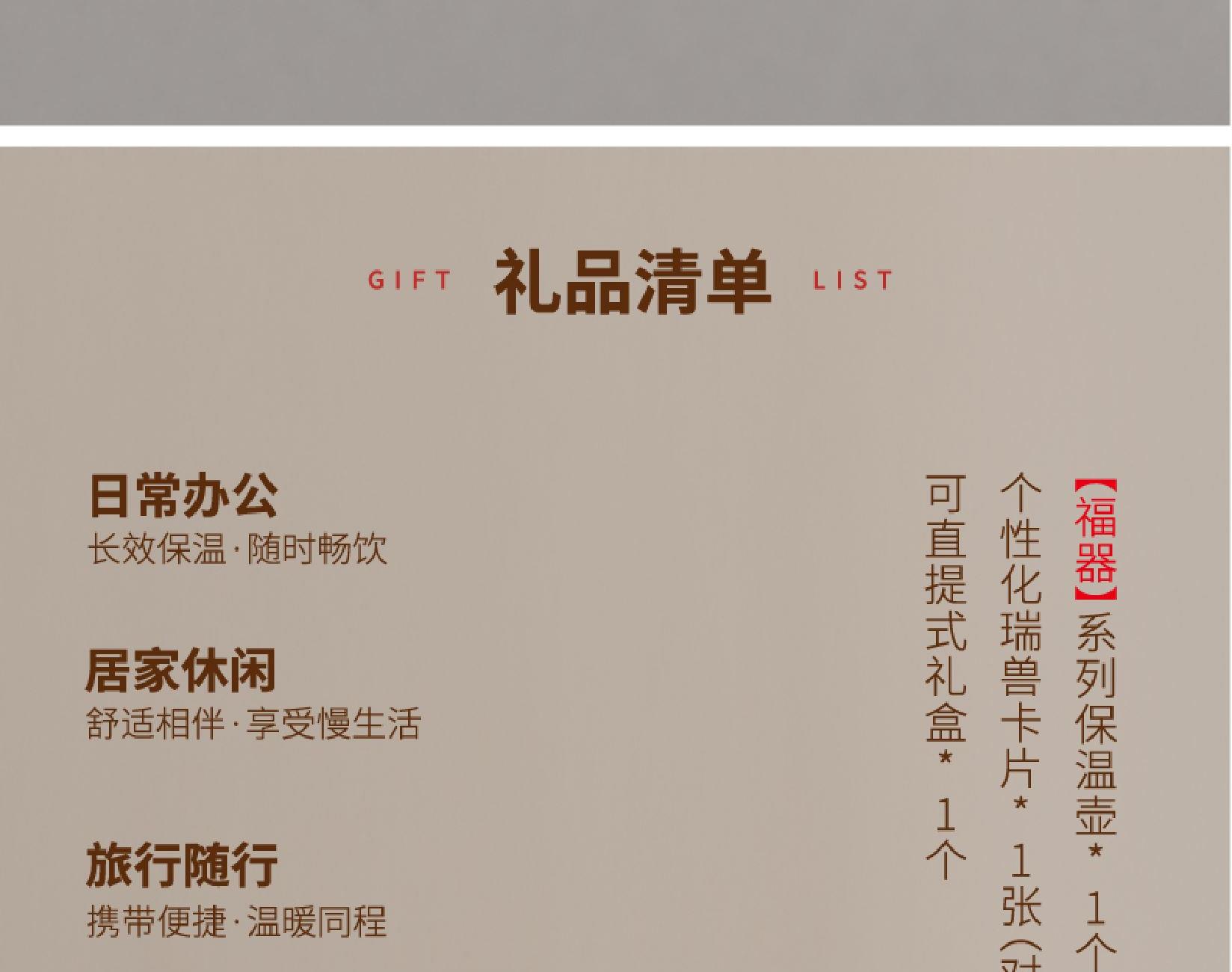 【福气】系类保温壶*1个(6款可选)个性化瑞兽卡片*1张(对应壶款)可直接提式礼盒*1个