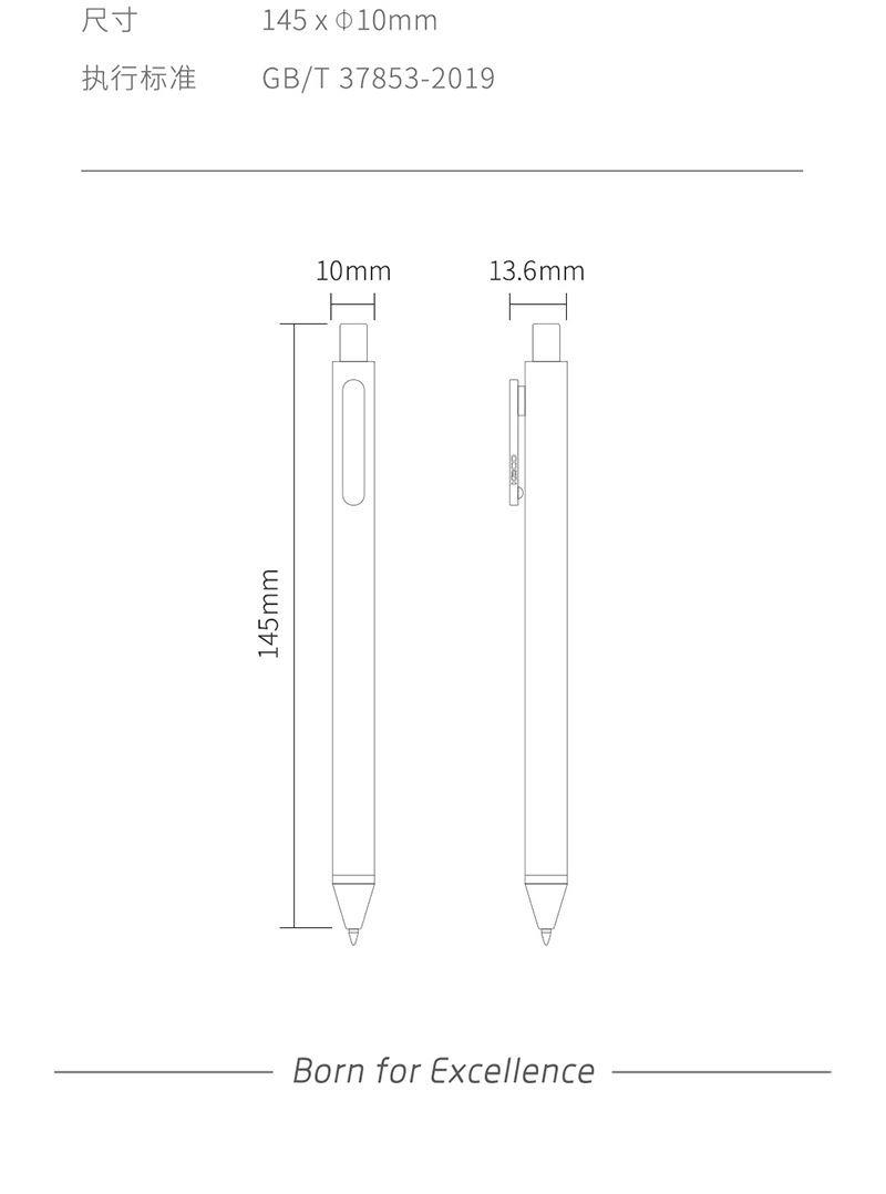 尺 寸:145*13.6mm 材 质:丙烯腈-丁二烯-苯乙烯塑料 外观颜色:国风系列/莫兰迪系列/马卡龙/联名款 1、化繁为简的设计理念,荣获2015年当代好设计金奖。 2、经典主题色彩,风采迥异,彩色书写愉悦心情。 3、颜色丰富,适合日常学习标记,书写流畅,不易断墨。 4、笔杆采用软胶喷漆,触感柔和细腻,执笔舒适柔和。 定制工艺:笔身印刷Logo 笔盒印刷Logo 打样周期:3-5天 货 期:7-10天发货(不含重大法定假日) 包装方式:彩盒