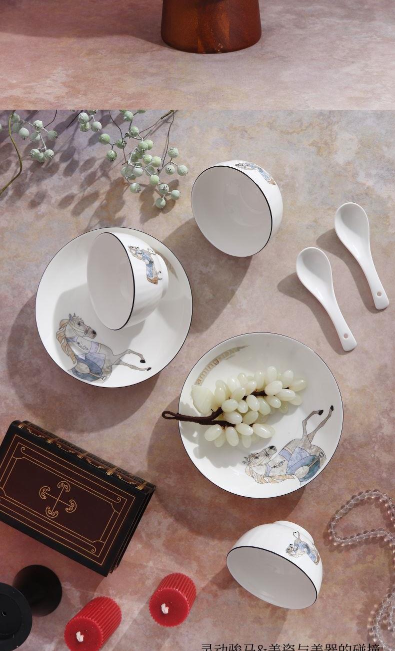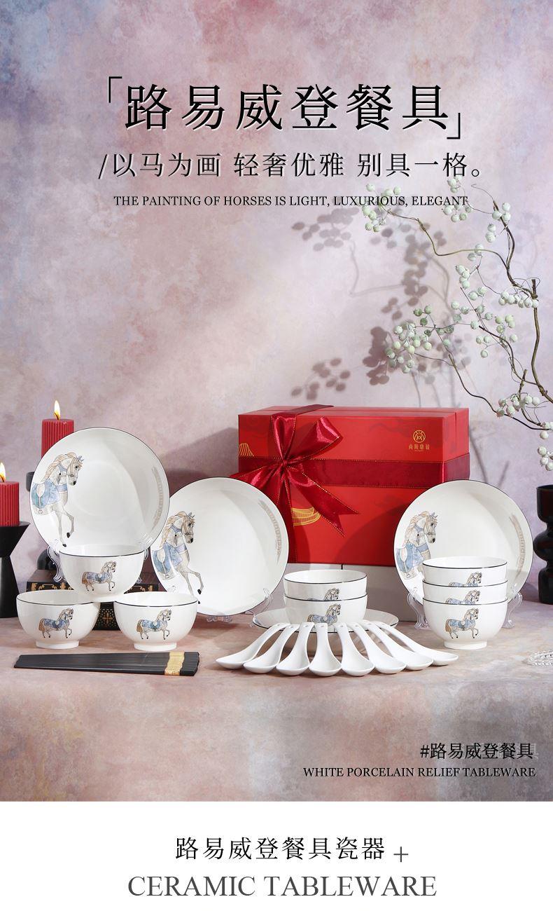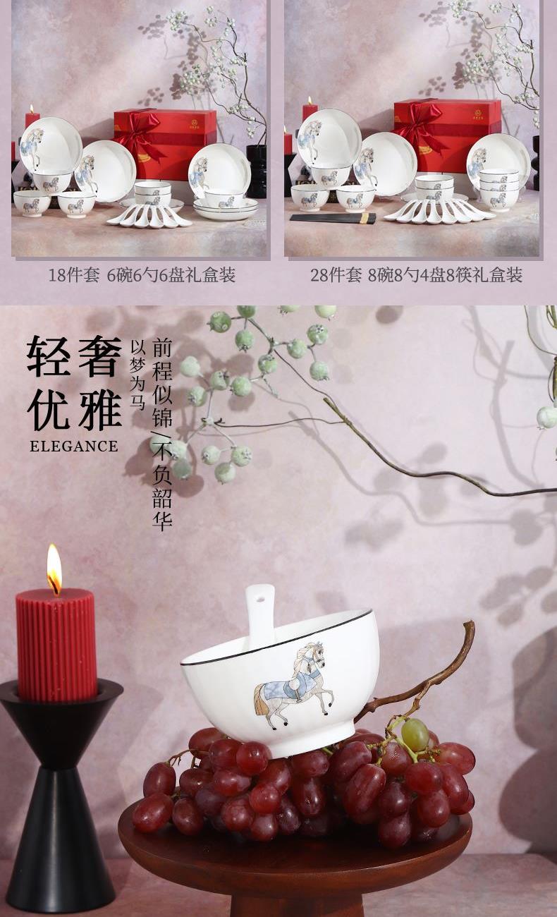 产品组成:8碗+8勺+4盘+8筷+礼盒 产品材质:低骨瓷 产品工艺:烤花+素烧 产品规格:4.5寸碗,三弯小勺,8寸盘 包装尺寸:32x23x9.2cm
