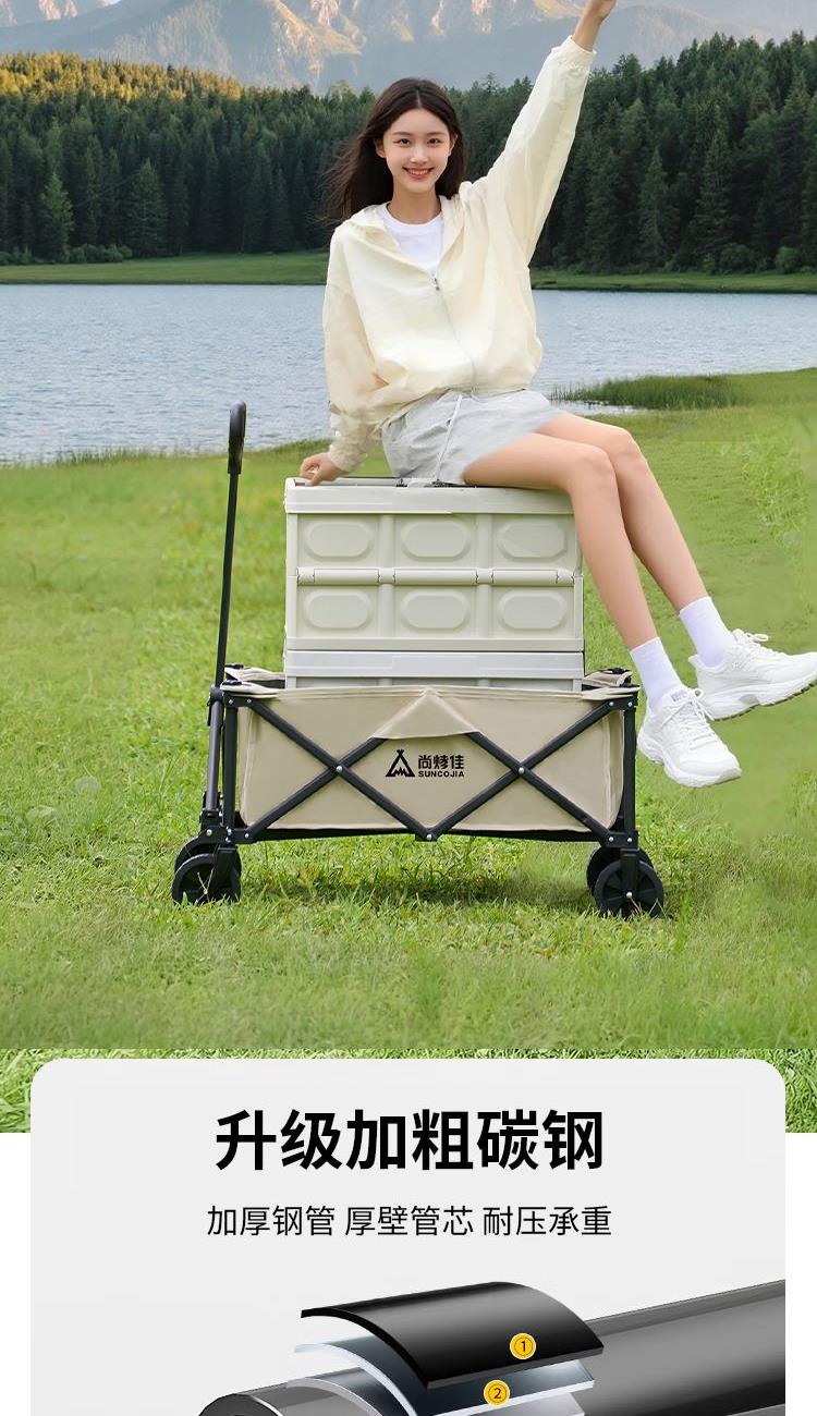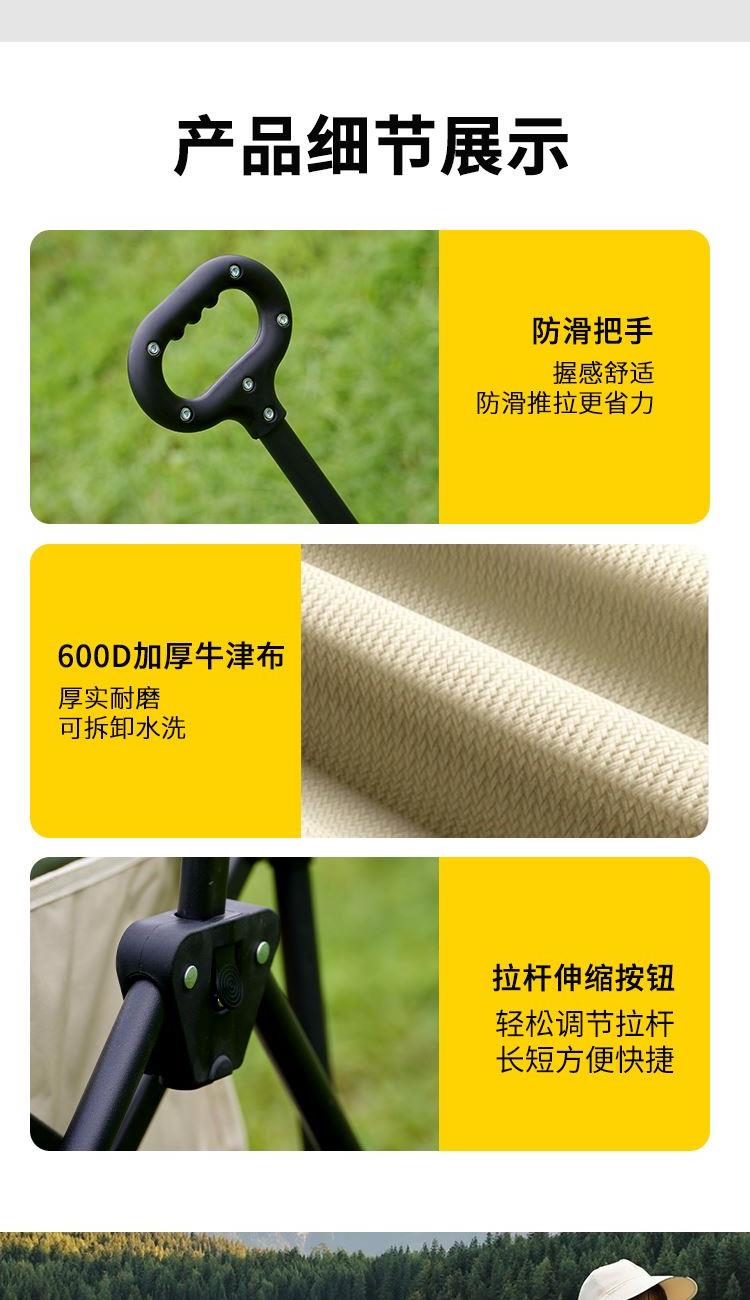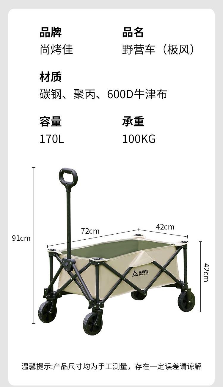 "颜色:米和绿色拼色 产品展开尺寸:72*42*91cm 产品折叠尺寸:24*17*59cm 产品毛重:5.5kg 产品材质:铁 聚丙 600d布 内盒尺寸:62x18x24"