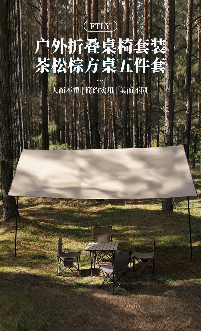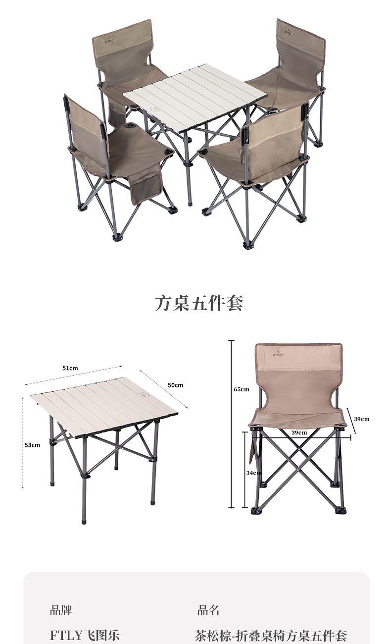FTLY飞图乐茶松棕-折叠桌椅方桌五件套ZDZY1502