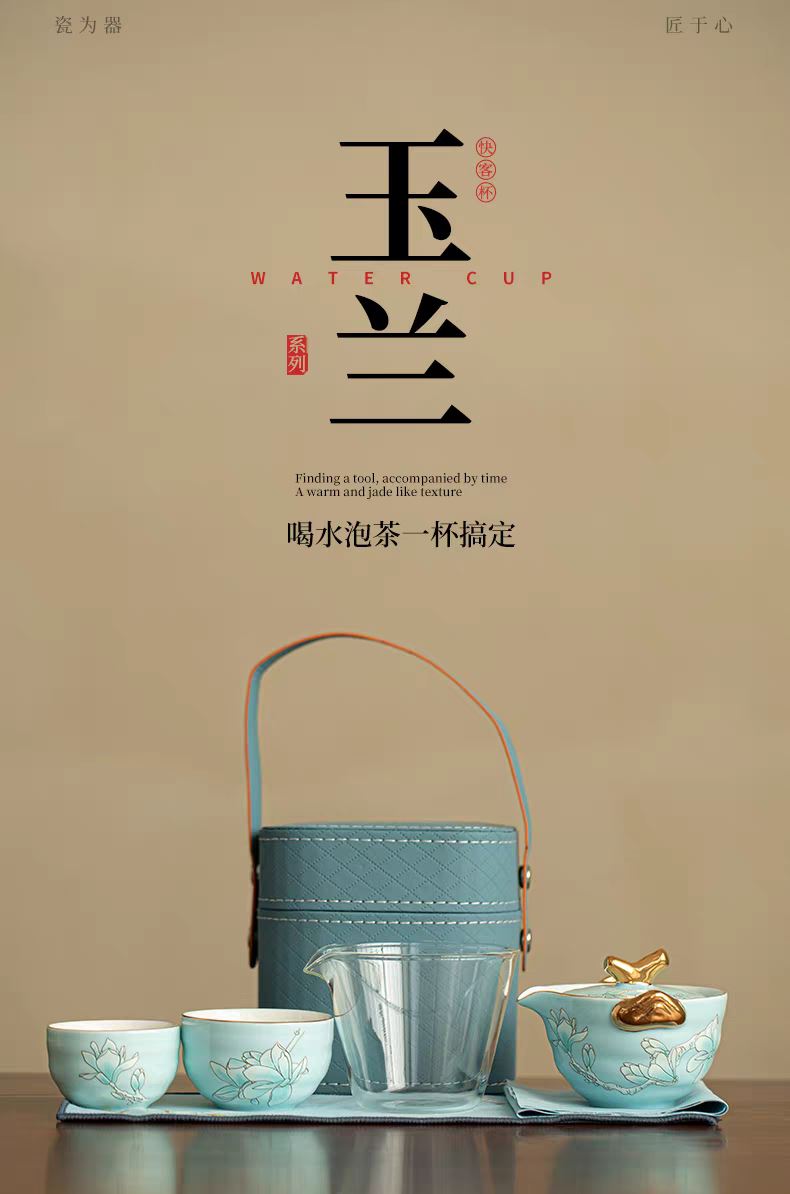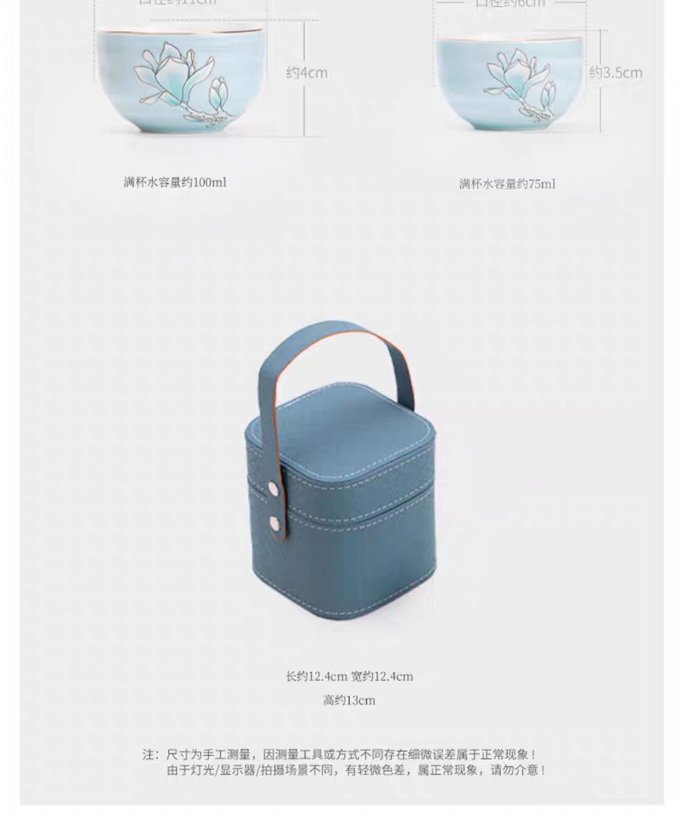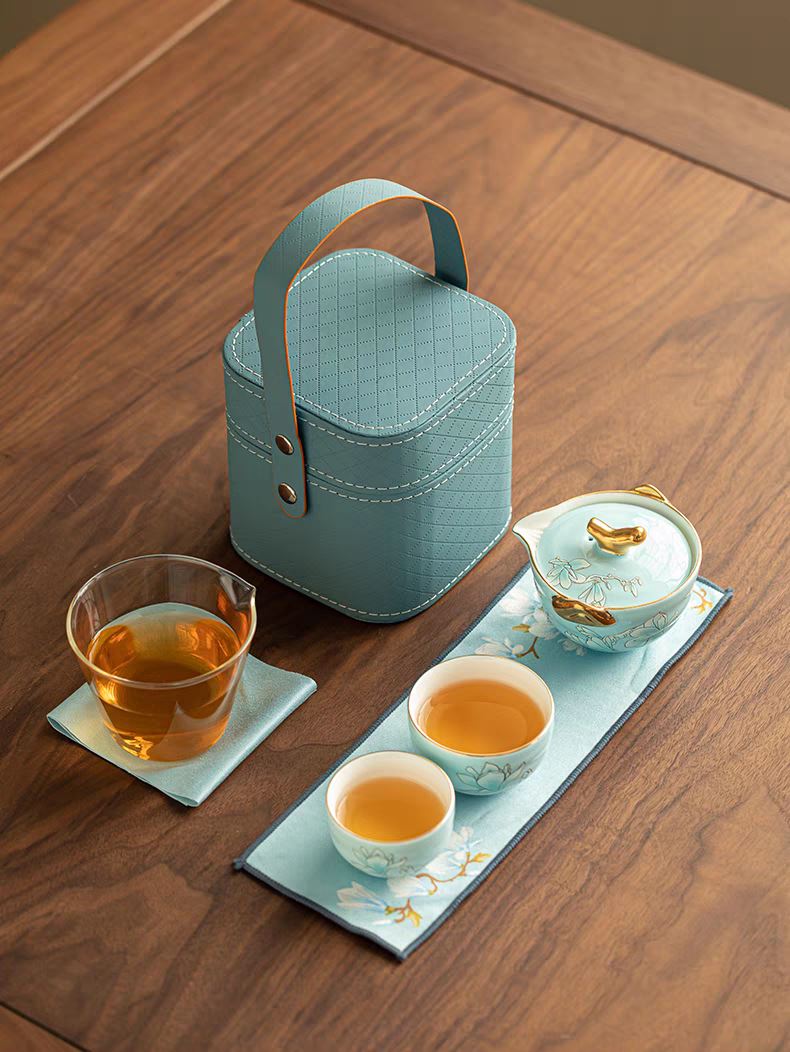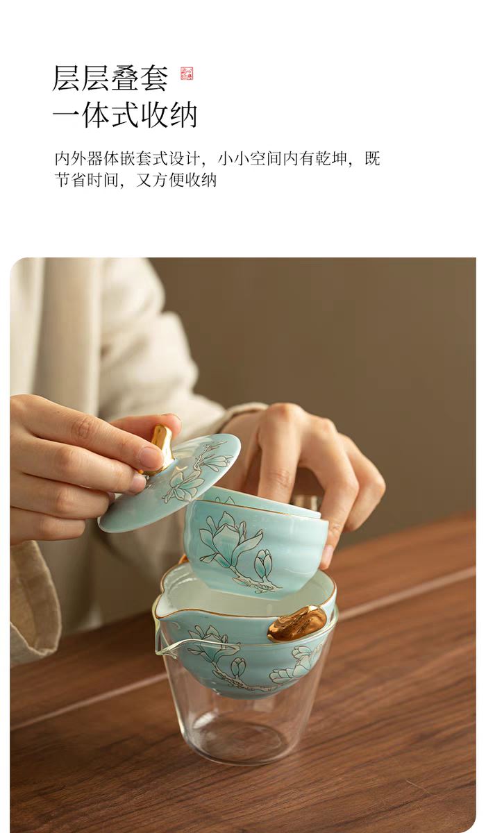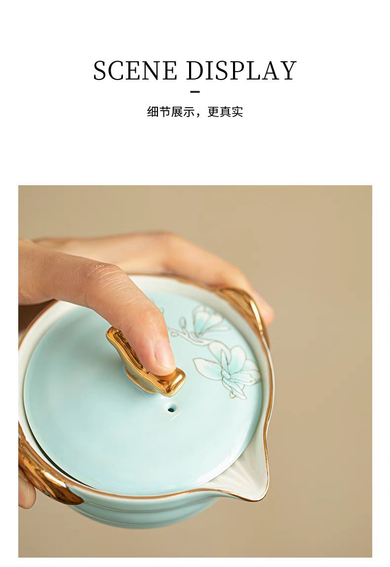 尾桥下窑鎏金枝上玉兰旅行茶具套装一壶二杯便携功夫泡茶套装