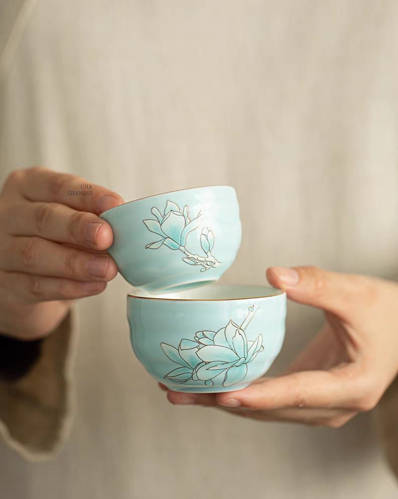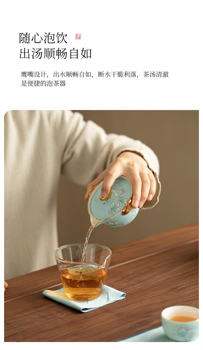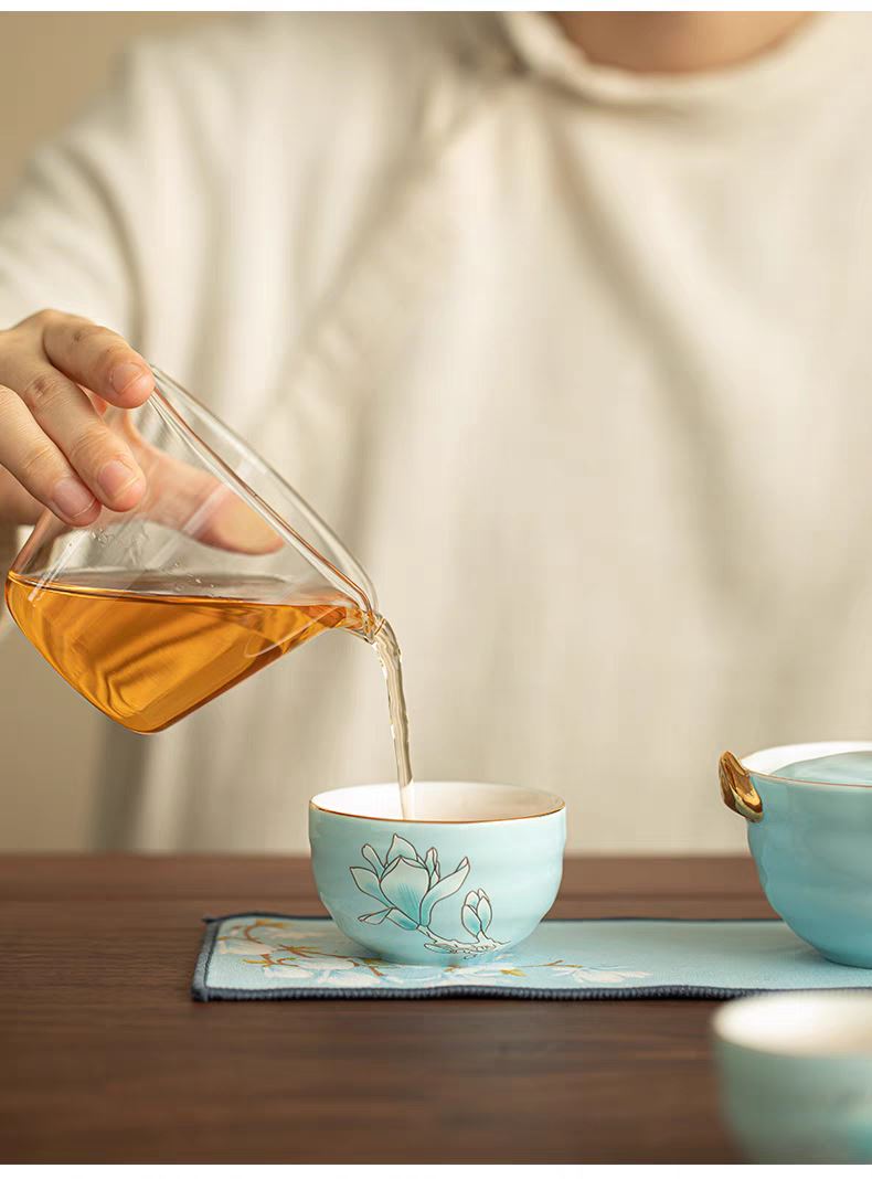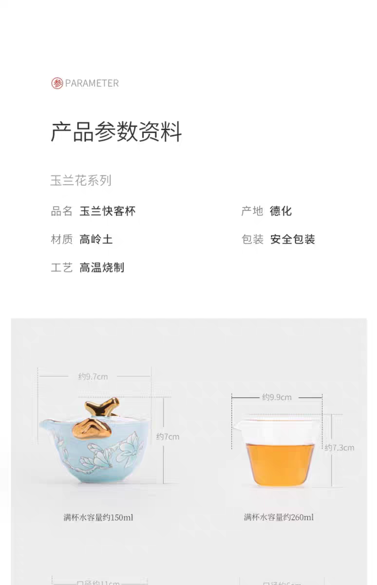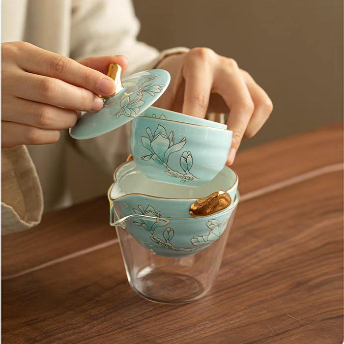 尾桥下窑鎏金枝上玉兰旅行茶具套装一壶二杯便携功夫泡茶套装