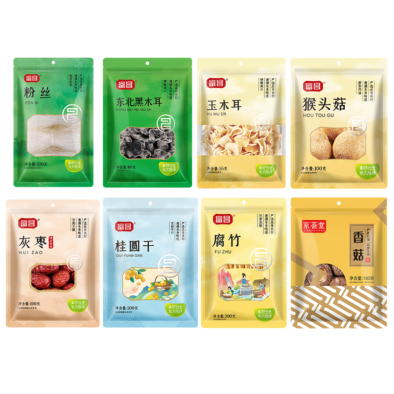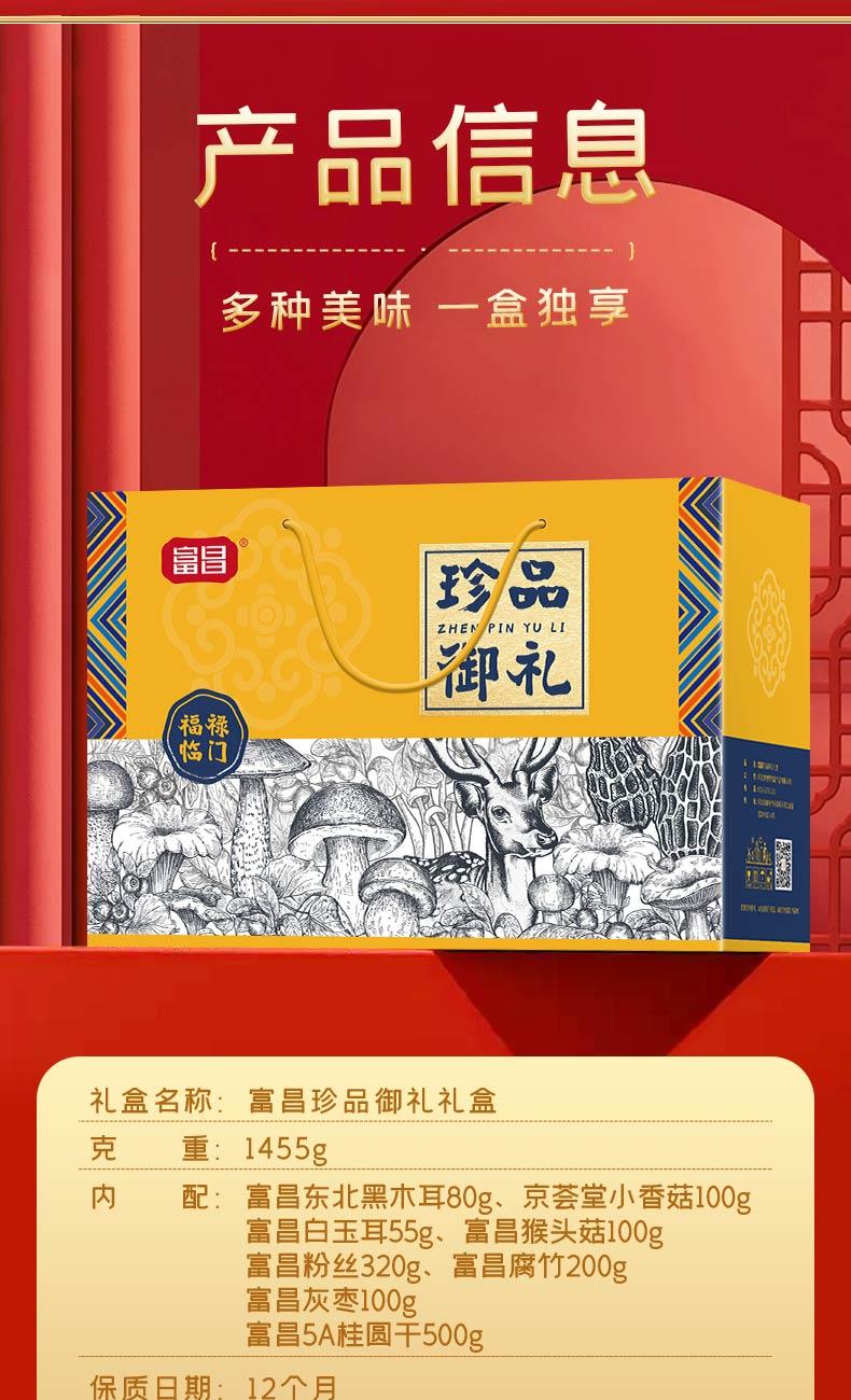 【富昌】东北黑木耳80g 【富昌】京荟堂小香菇100g 【富昌】白玉耳55g 【富昌】猴头菇100g 【富昌】粉丝320g 【富昌】腐竹200g 【富昌】灰枣100g 【富昌】5A桂圆干500g 名物精美礼盒*1
