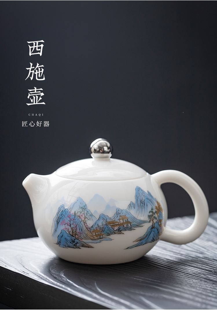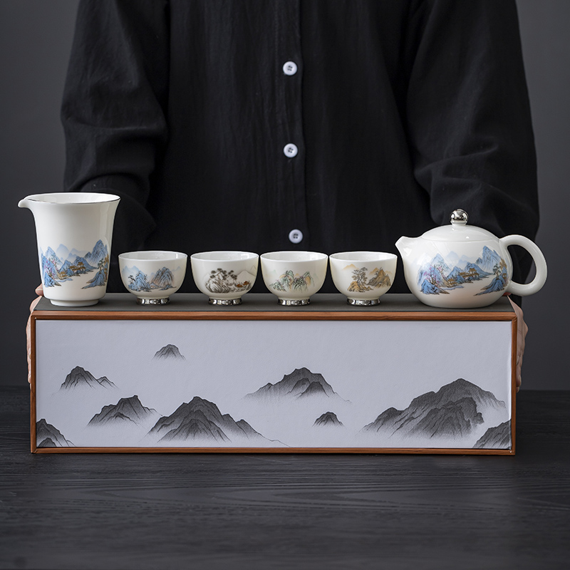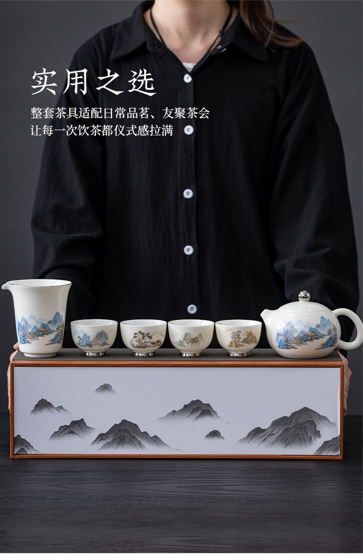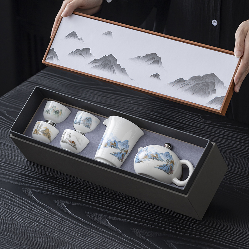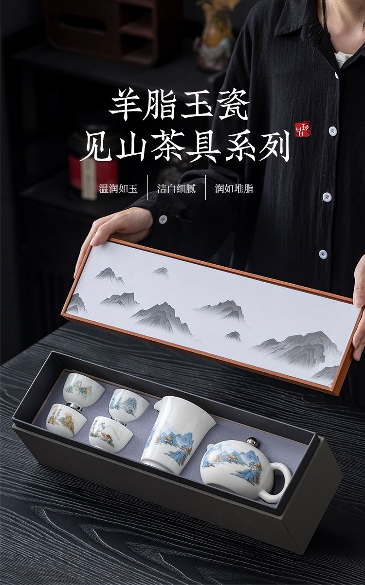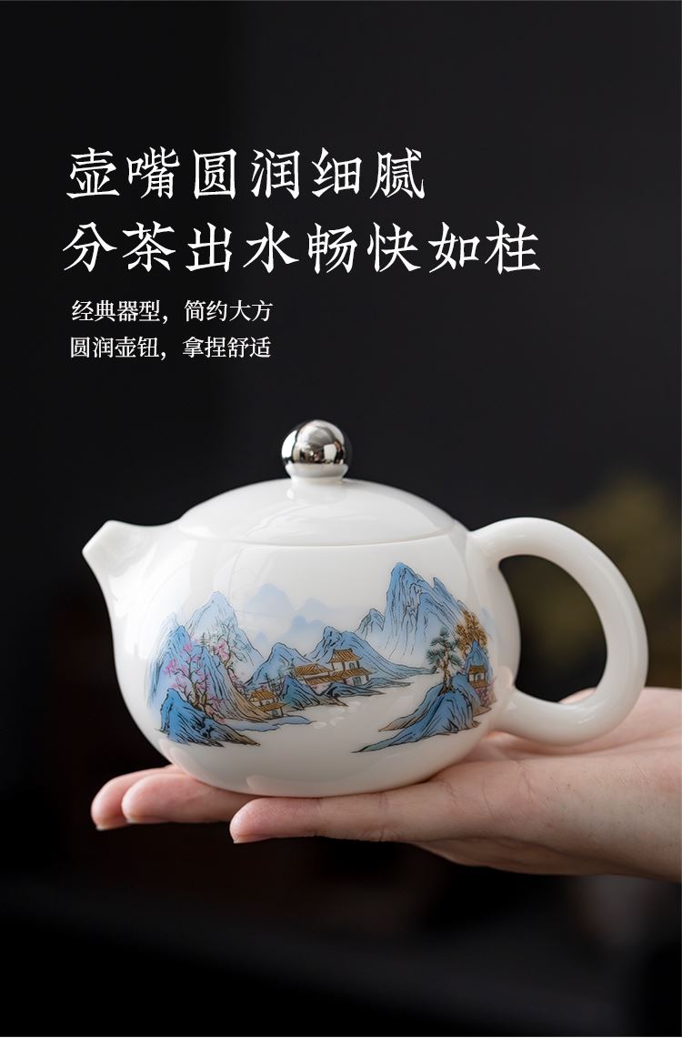 云博陶瓷羊脂玉千里江山四季平安一壶四杯中国风山水画户外伴手礼