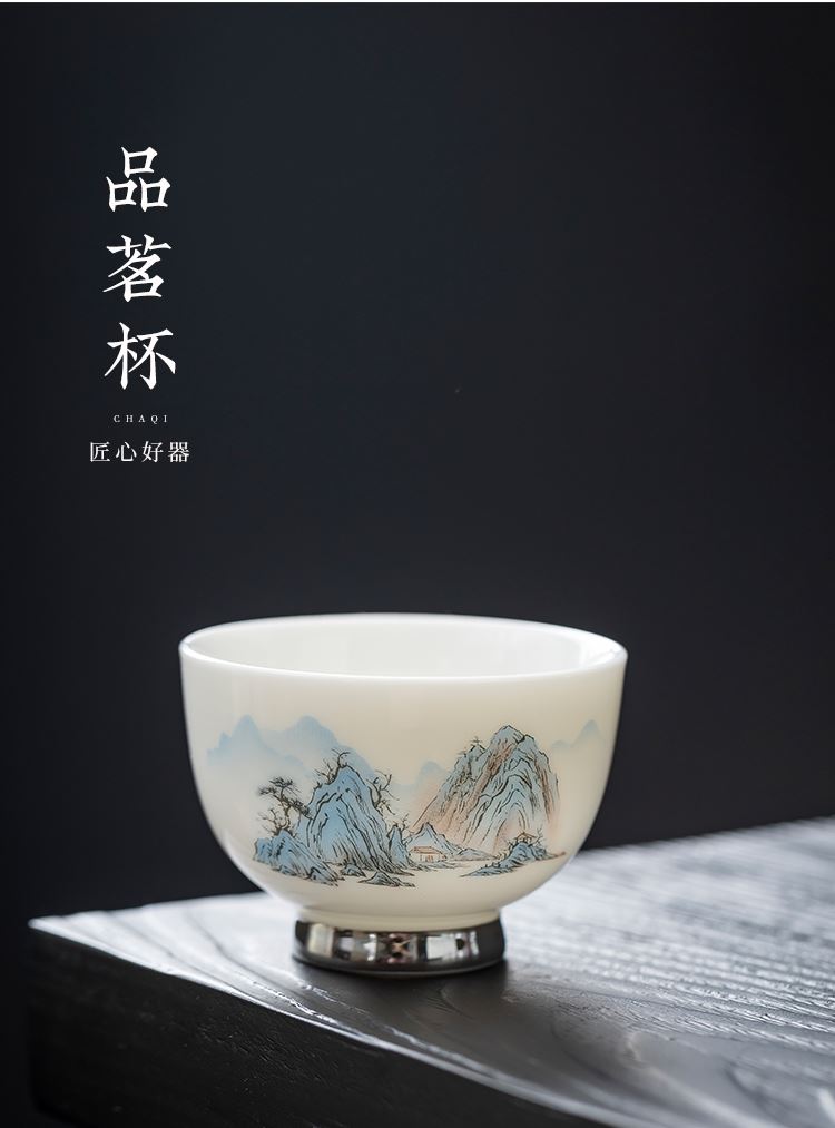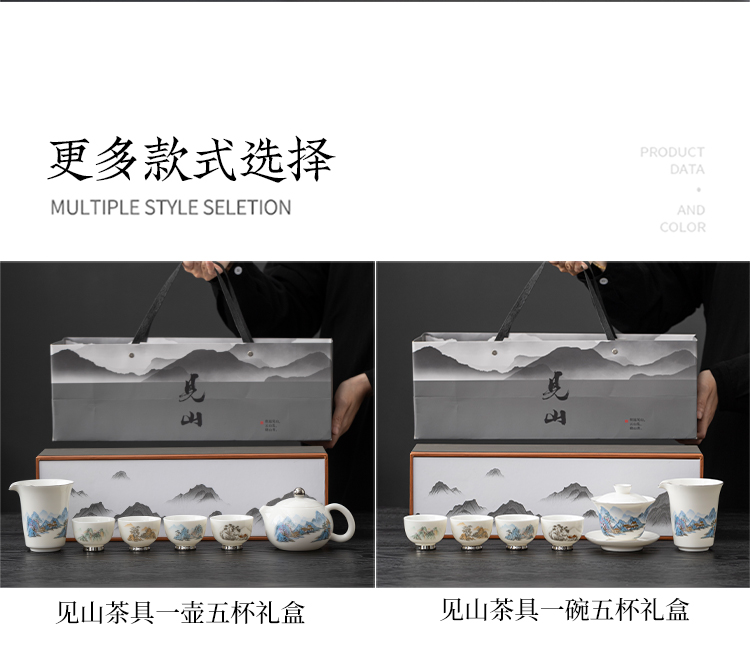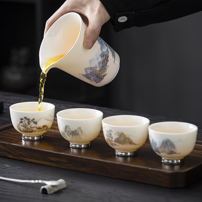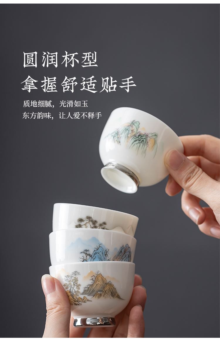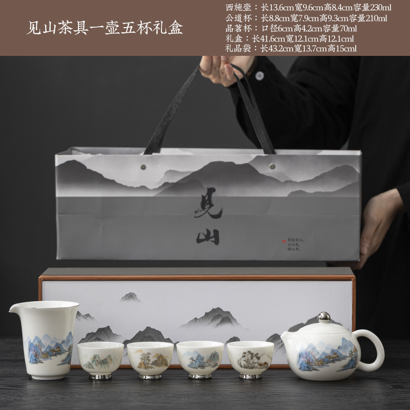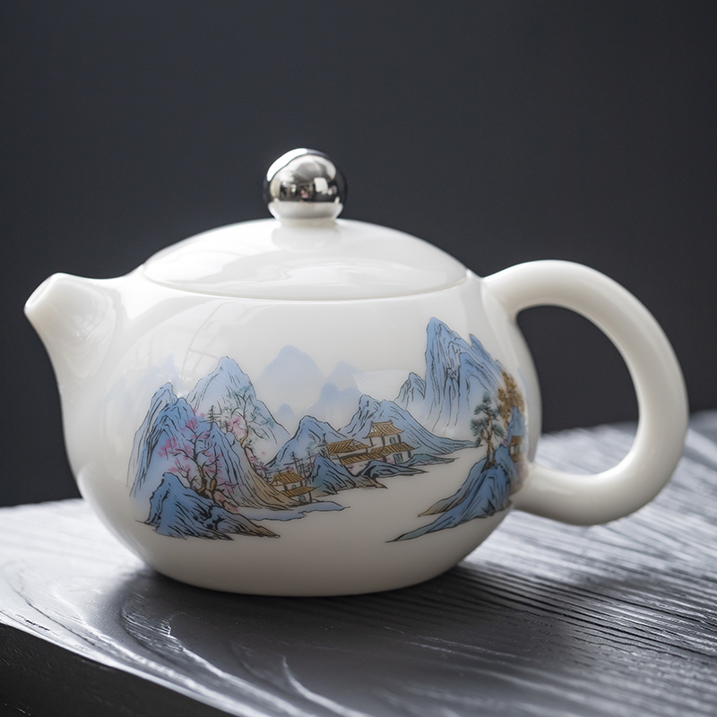 云博陶瓷羊脂玉千里江山四季平安一壶四杯中国风山水画户外伴手礼