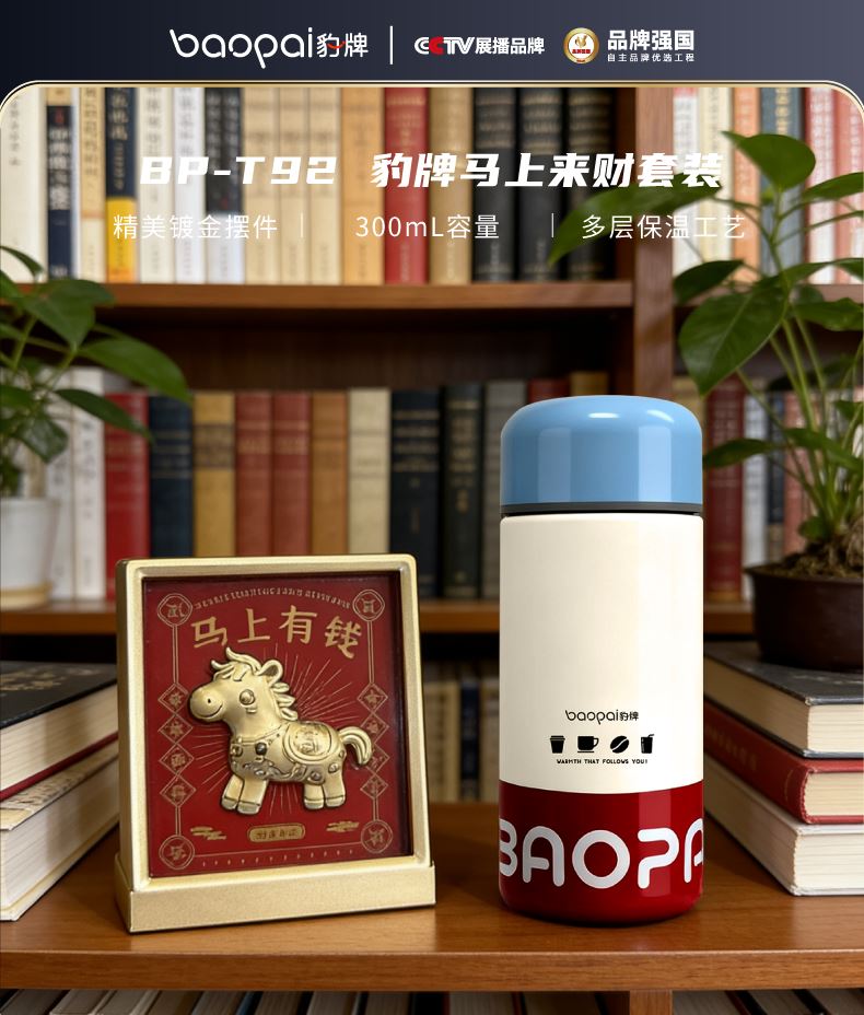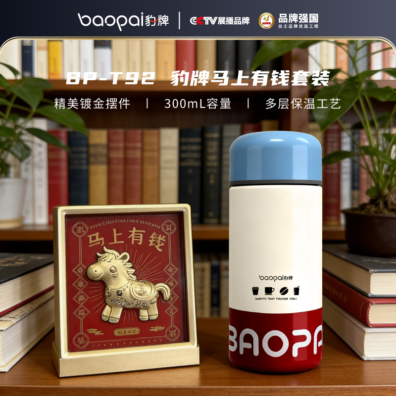 马上有钱摆件*1+300ml覆钛保温杯*1 产品容量:300ML 产品重量:0.3KG 产品尺寸:160*65mm 产品材质:覆钛涂层+304不锈钢食品级硅胶 马上有钱摆件 马 材 质 :铝箔镀金 产品尺寸:100*40*127mm 框 材 质 :ABS+亚克力
