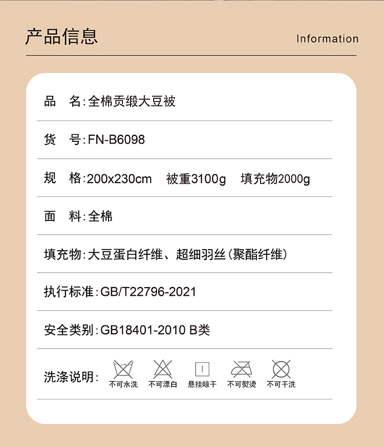 芳恩FN-B6098全棉贡缎大豆被200x230cm