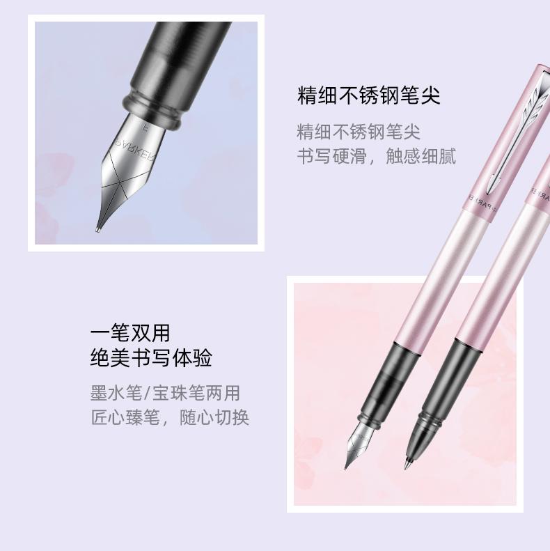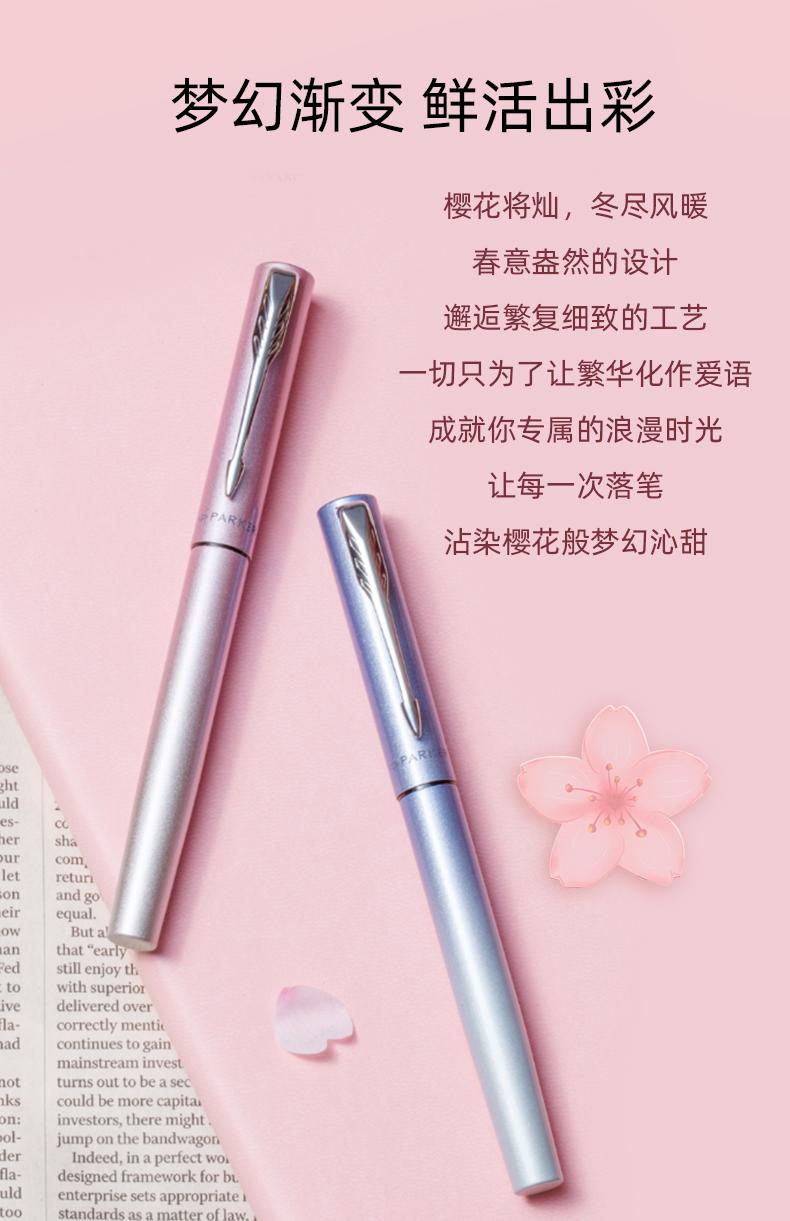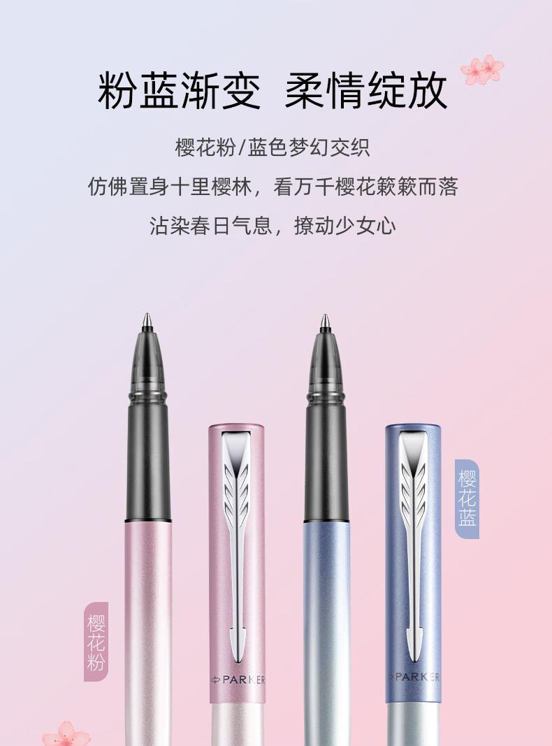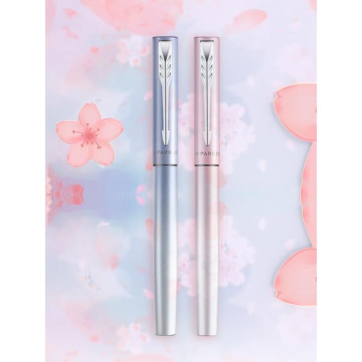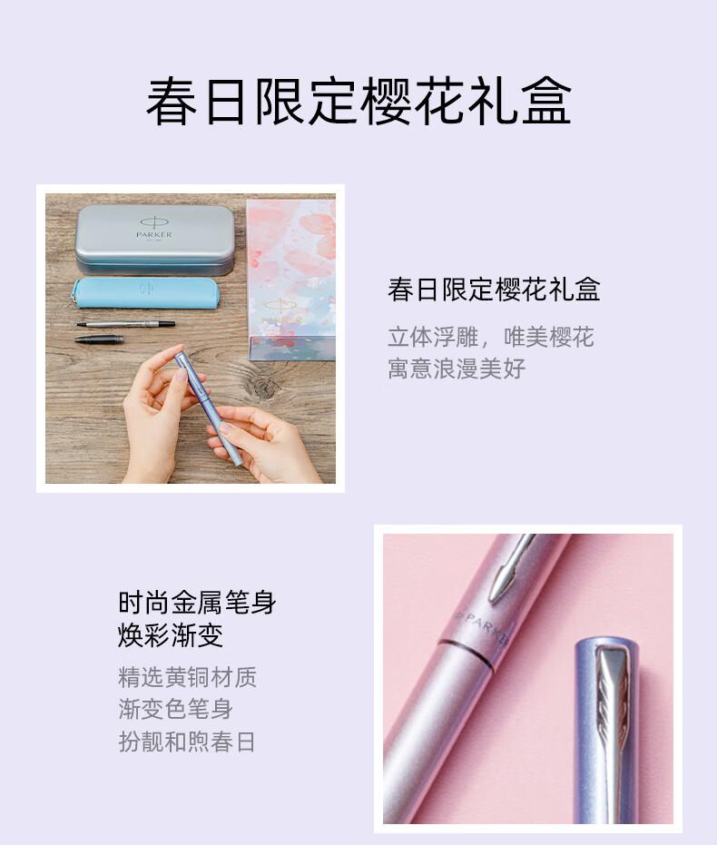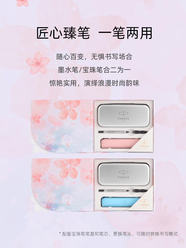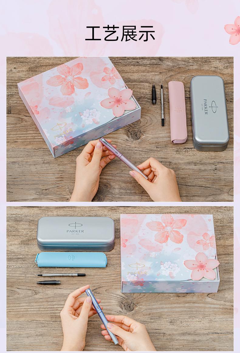 [配置] 墨水笔、墨胆、笔套、环保铁盒、派克手提袋、宝珠笔芯、宝珠笔握把 樱你而美 邂逅浪漫 梦幻渐变 鲜活出彩 一见倾心的专属浪漫 粉蓝渐变 柔情绽放