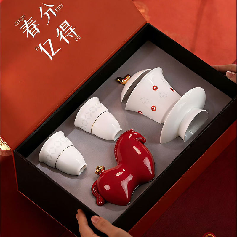 尾桥下窑春分得亿玲珑瓷腰缠万贯功夫茶具小套装会议开业伴手礼