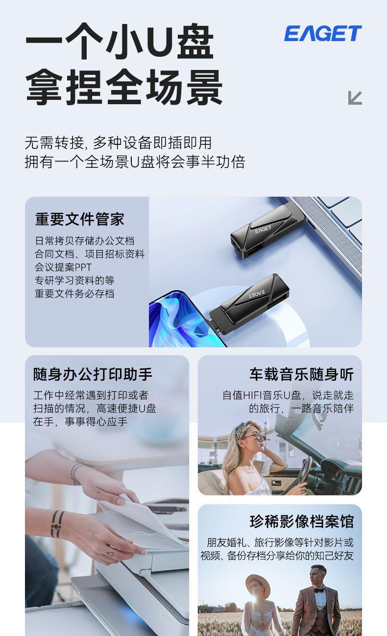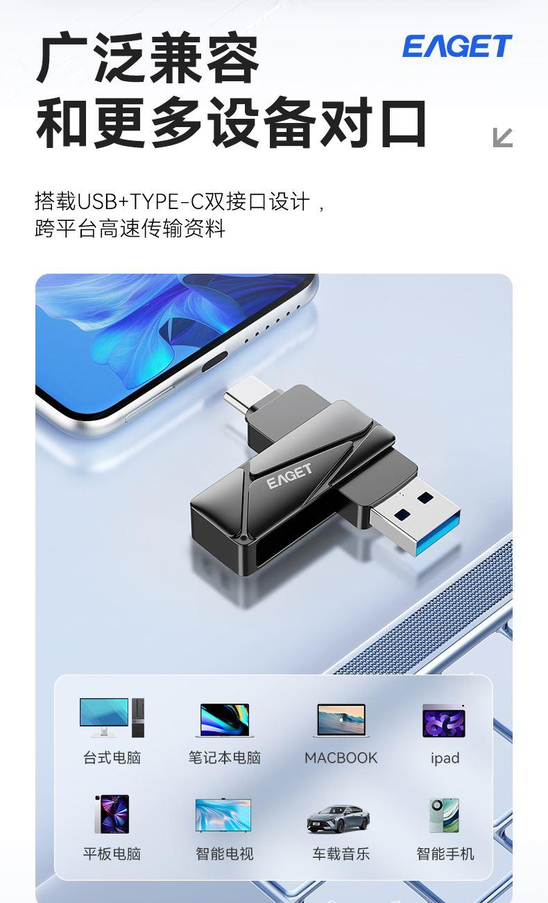 忆捷HS66极速固态U盘USB3.2手机双接口优盘256G