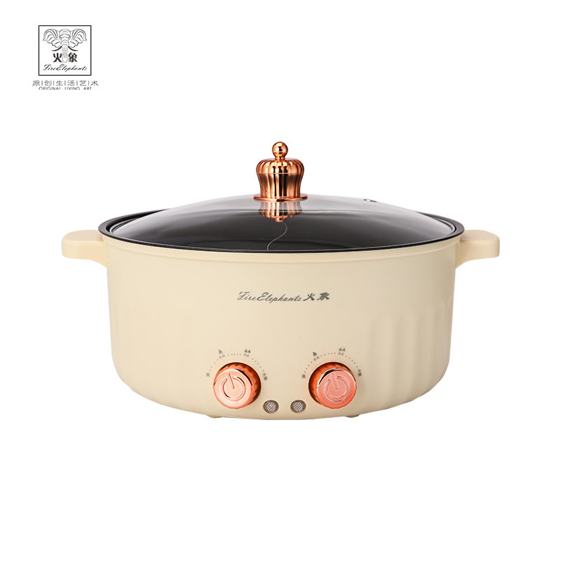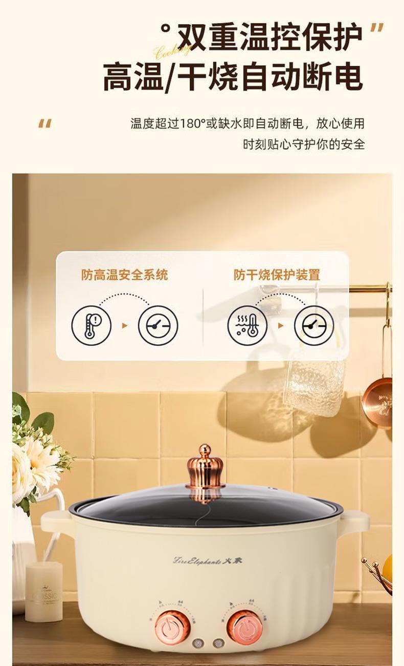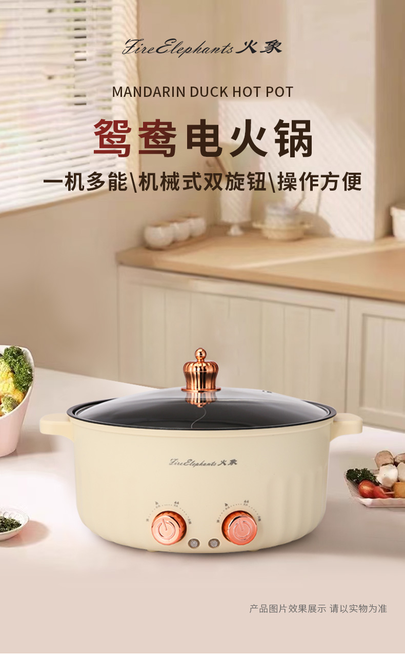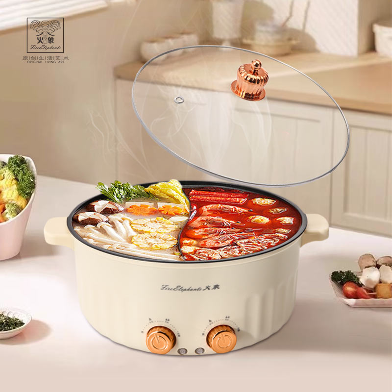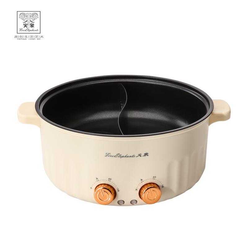 额定功率:1600W 额定电压:220V~ 额定频率:50Hz 额定容量:5L 产品净重/毛重:1.5kg/1.8kg 产品材质:PP+不锈钢喷不粘涂层 产品颜色:米白色 产品规格:390*325*220mm 彩盒尺寸:323*210*323mm 外箱尺寸:665*435*665mm 鸳鸯火锅一机多能,双格可同时使用也可以单独使用,鸳鸯火锅、独立火锅,轻松应对; 透明玻璃上盖,烹煮过程一目了然; 机械式双旋钮单边独立控制,操作简单方便; 食品级不粘涂层,久用不沾,一冲即净; 设有无水干烧自动跳断保护,安全料理更放心。