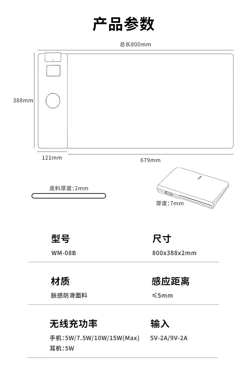 15W(Max)无线快充:智能匹配手机,自动调节电流,避免杂乱无章的线,让充电更便捷整洁。