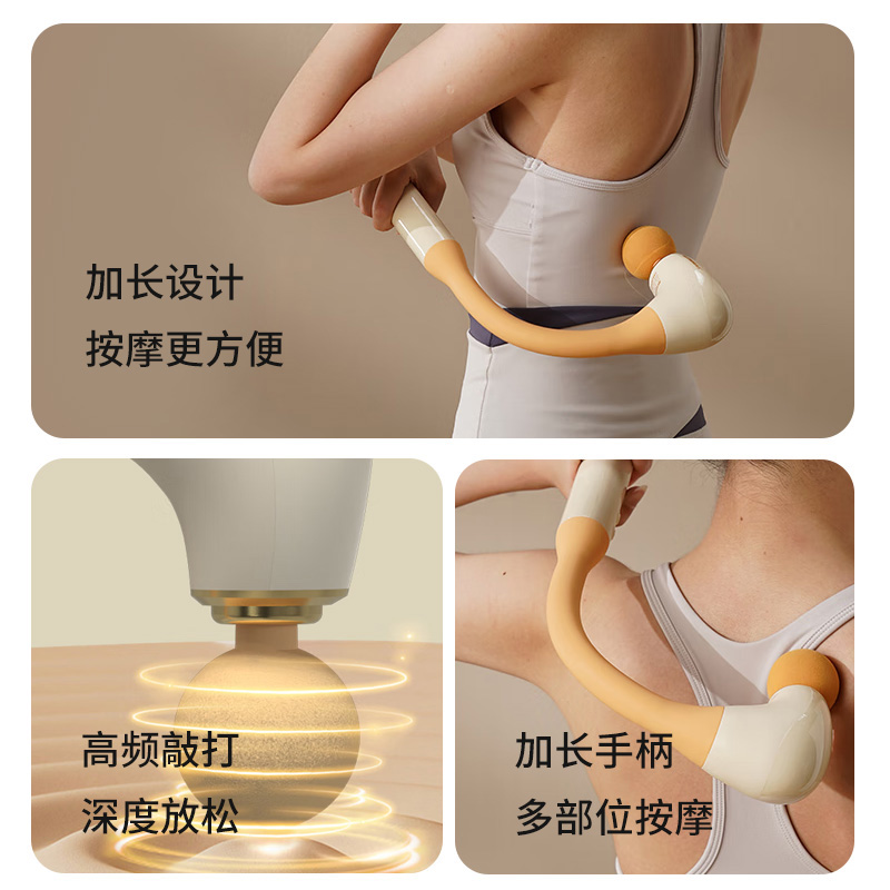 充电电压: DC 5V 额定功率: 15W 电机转速: 3800r/min 电池容量: 1200mAh 产品重量: 860g 产品颜色: 奶黄色 强悍性能,高性价比 快速放松,即刻享受 Type-C闪电快充,时刻补充能量 让按摩融入生活,肆意挥汗,悦享身心