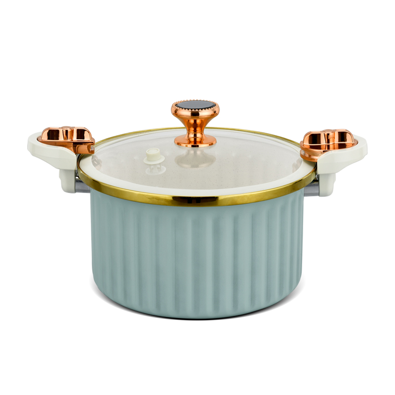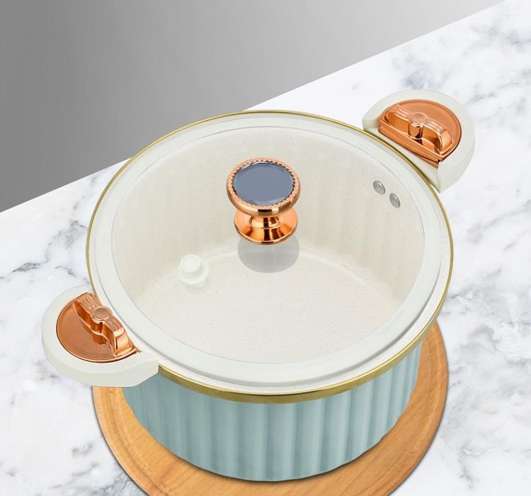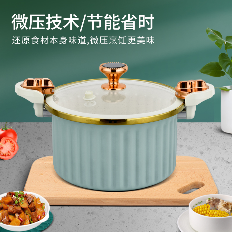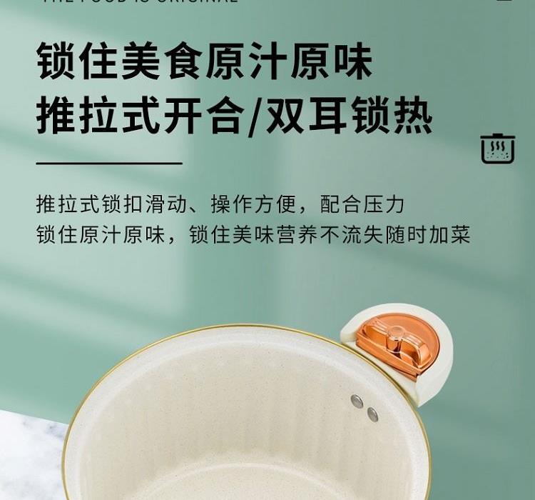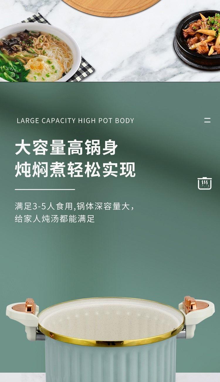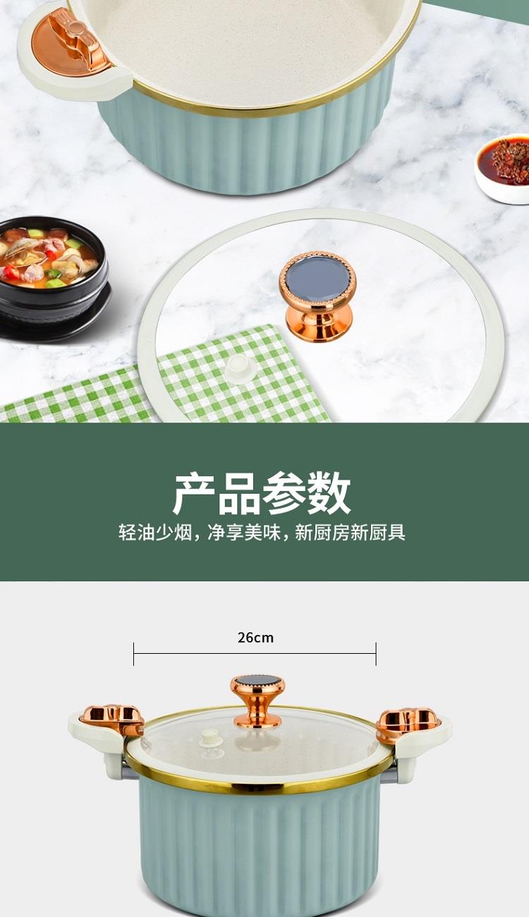规 格:26cm(7L) 材 质:精铁 颜。 色:白色、天青色 包装尺寸:30*30*16.5cm 采用标准食品接触精铁材质精制而成,内外熔色喷涂工艺,大容量美观大方; 锅盖采用加厚的T型微压玻璃盖,手柄可拆卸清洗,微压汤锅均有不粘效果,适用所有炉具。 双密封微压节能设计,无风险负压焖烧省时省力