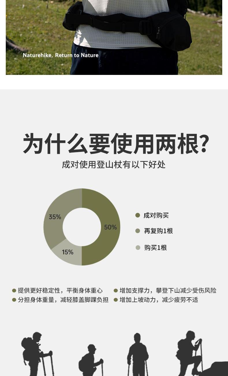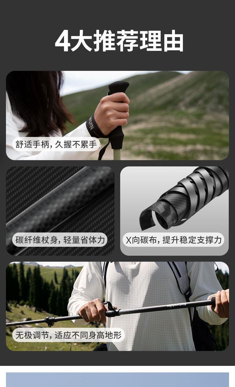 挪客初雪EXT1三节碳纤维登山杖CNK2300DS010