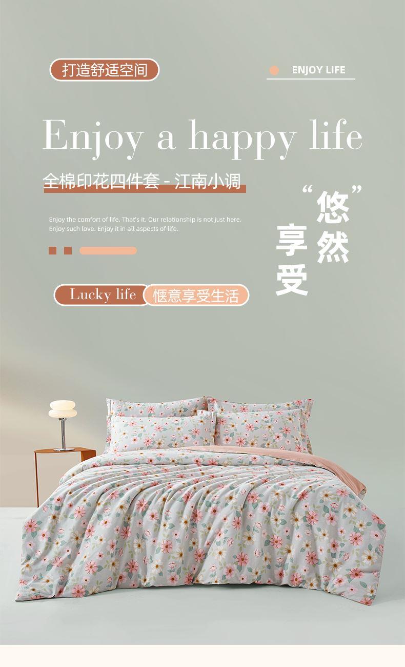 皮尔卡丹全棉印花四件套-江南小调PCAZ-02530