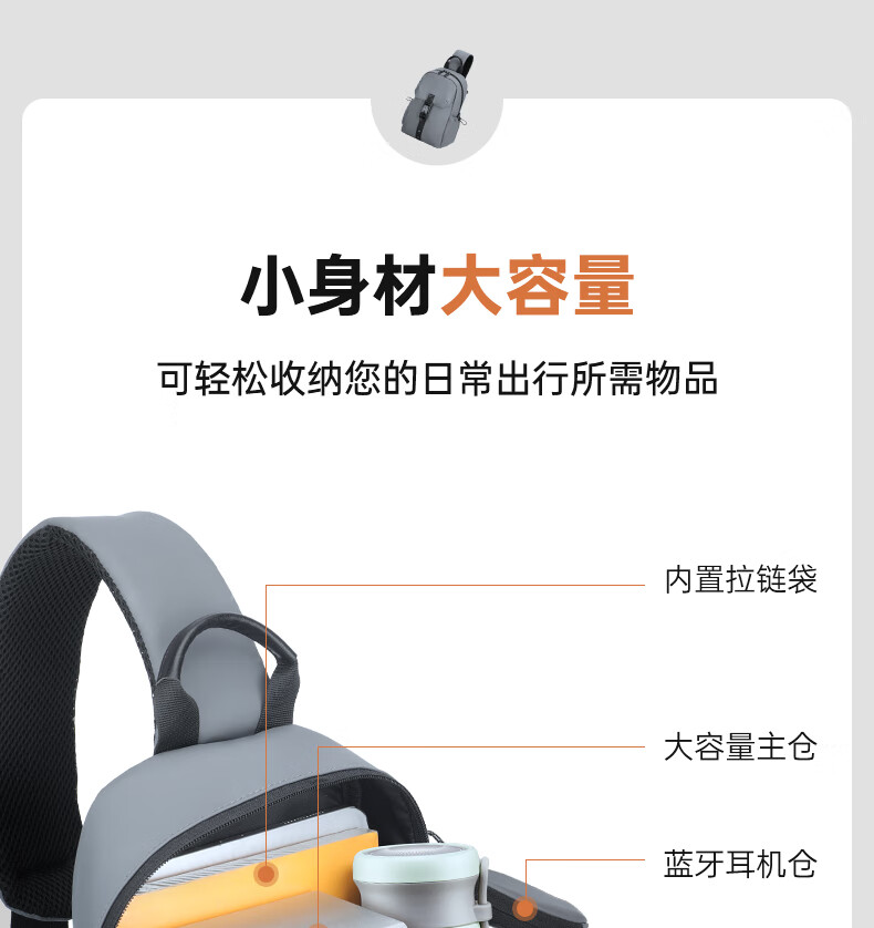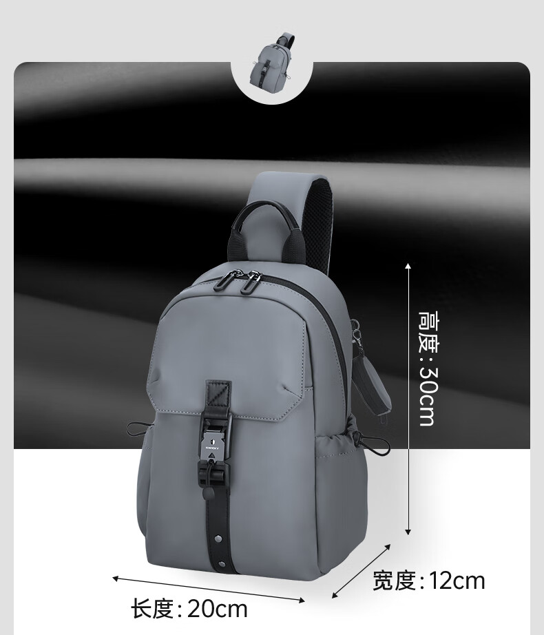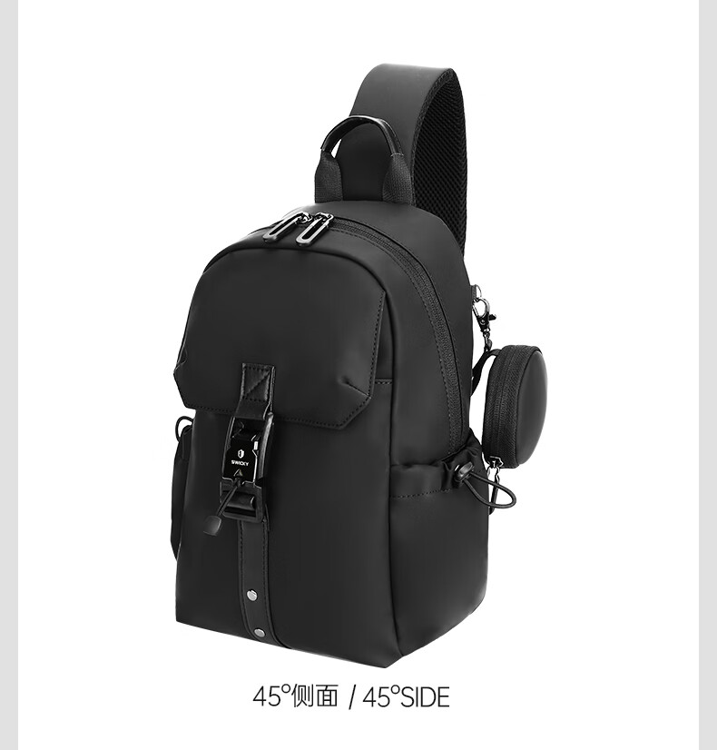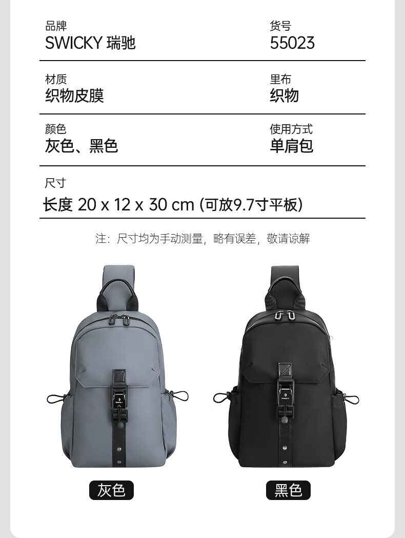型 号:55023尺 寸:200*120*300MM材 质:聚酯纤维 颜 色:黑色 重 量:0.4KG 斜挎包:内部设有储物小袋,收纳更合理。轻盛包身,减负出行。