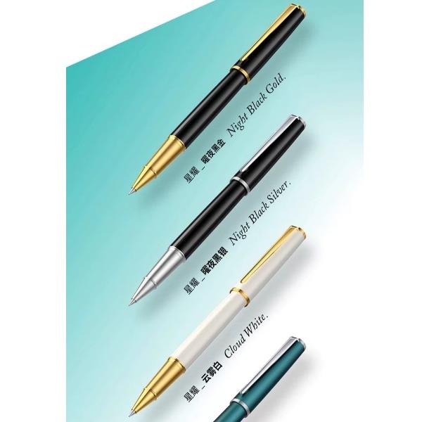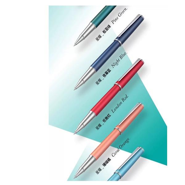 型号:星耀系列签字笔 类型:可替换芯宝珠笔 重量:墨水/宝珠笔25g/30g 颜色分类:曜夜黑金/曜夜黑银/黎雾灰/松苔绿/夜幕蓝/伦敦红/珊瑚橙/云雾白尼斯蓝/丁香雪 书写粗细:0.6mm 整笔材质:铝铜 笔盖:卡扣嵌套设计 笔握:24mm中距笔握 套餐类型:官方标配 包装方式:鸿运笔记本礼盒装 适用场景:送礼书写 适用人群:文艺青年 笔杆材质:金属笔身纹理:磨砂