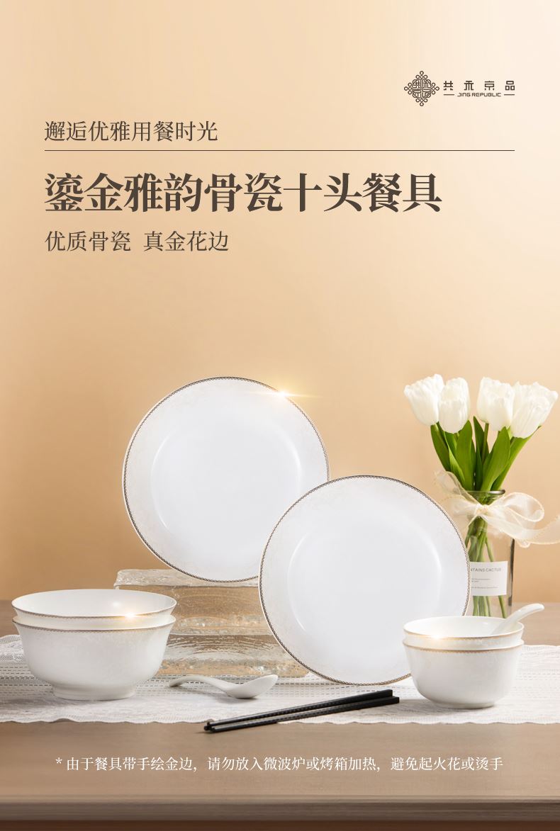 • 共禾京品鎏金雅韵骨瓷十头餐具套装