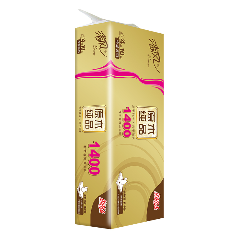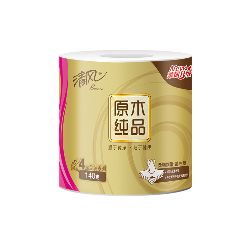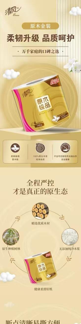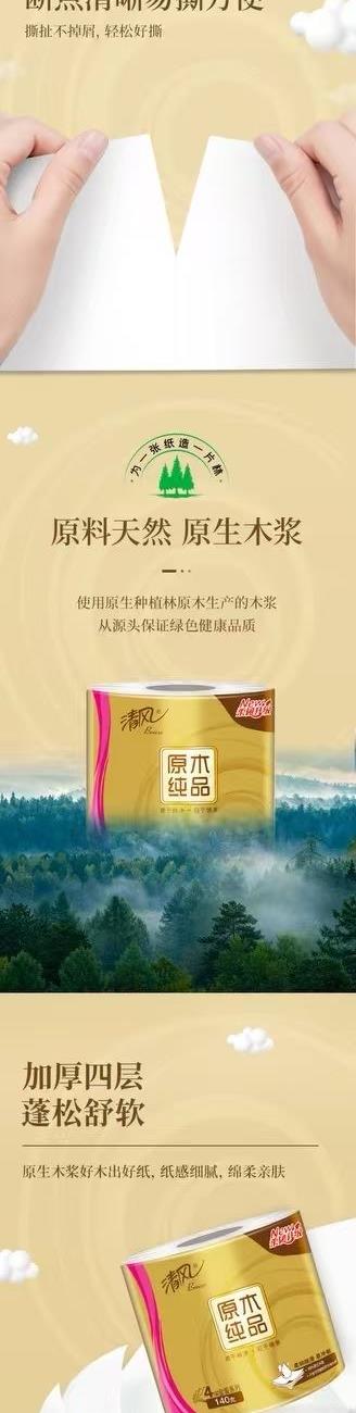 清风原木金装4层140克/卷*2提(20卷)筒卫生纸