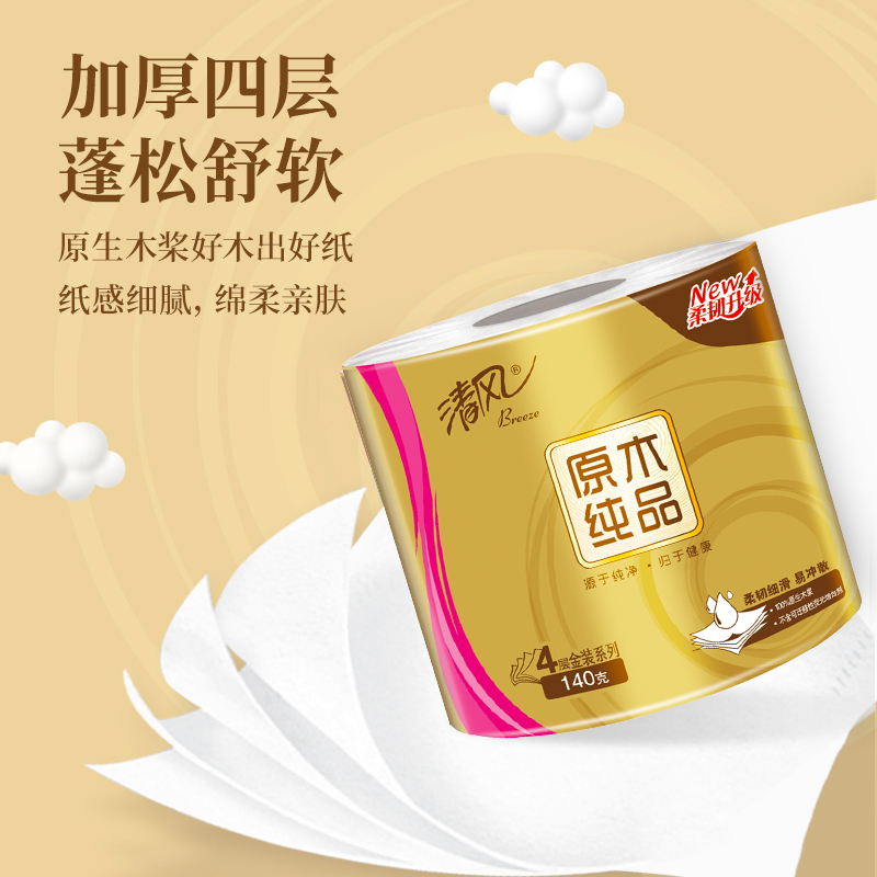 2.四层厚实,蓬松舒软 原生木浆好木出好纸,纸感细腻,棉柔亲肤。