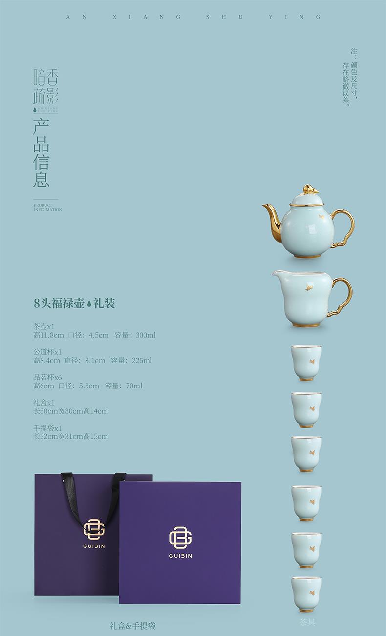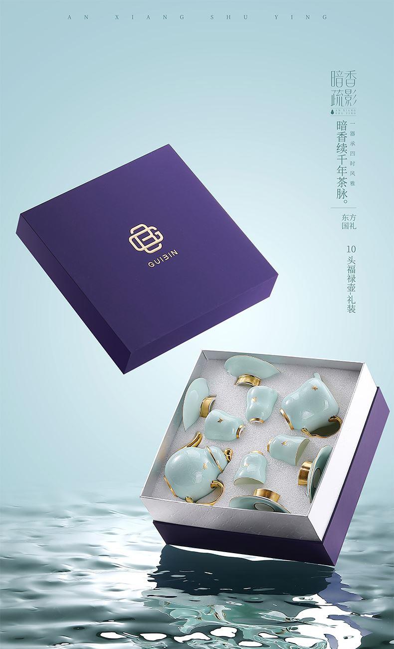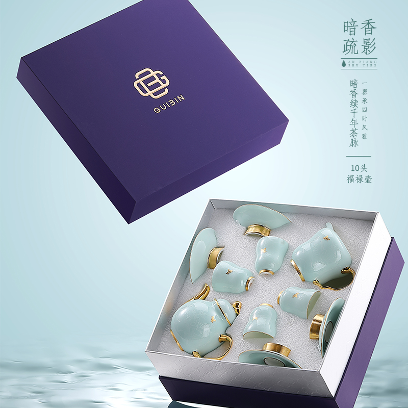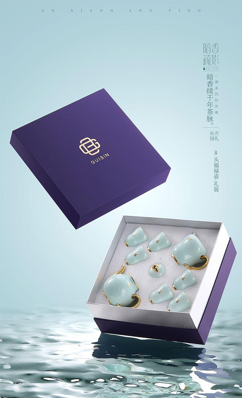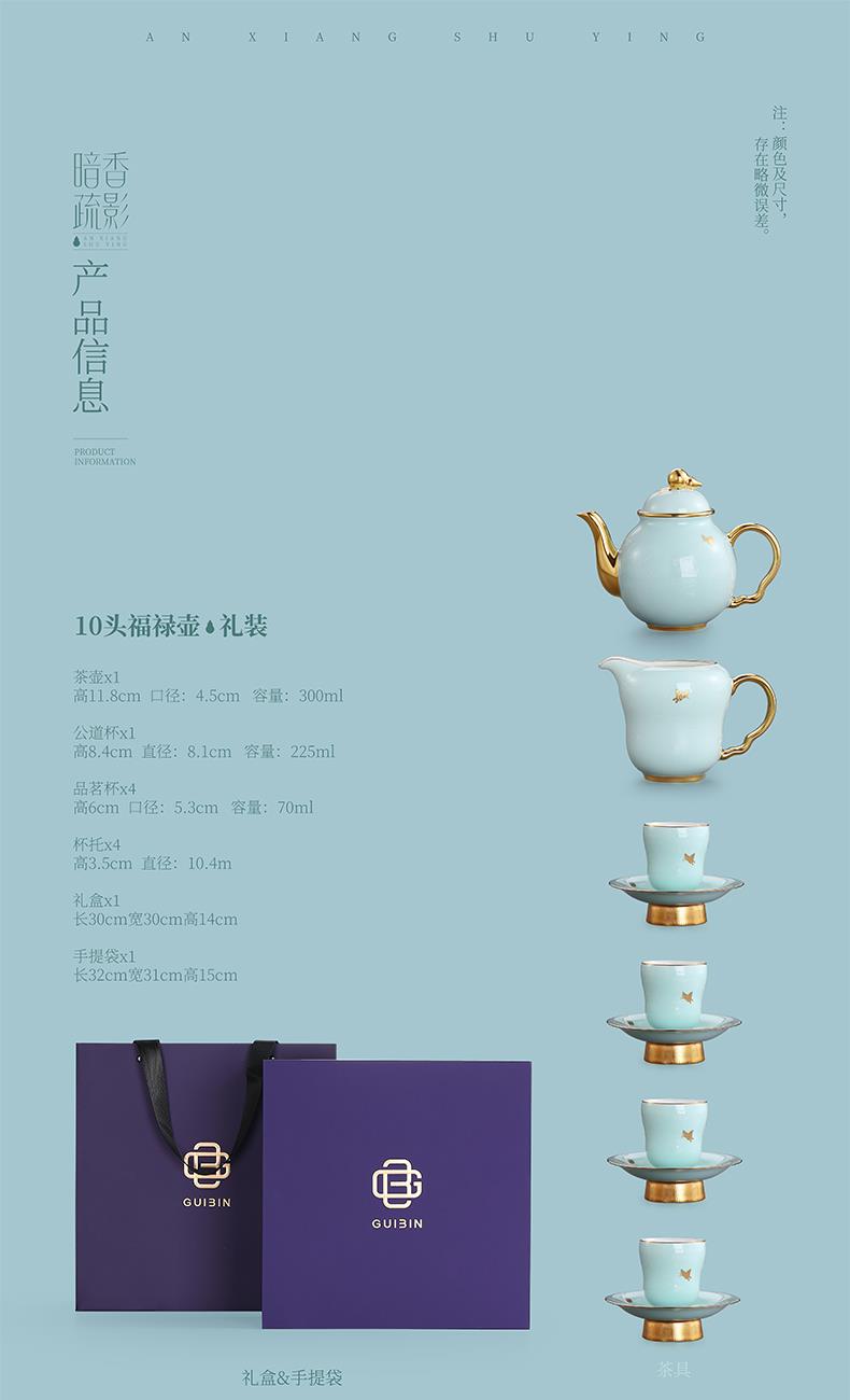1.注:商城报价对应首张主图款式! 其他套装参考细节图,费用另计! 2. 咨询下单请备注好产品信息! 3.首图款式产品明细:10头福禄壶礼装:茶壶*1、公道杯*1、品茗杯*4、杯托*4、礼袋*1、礼盒*1