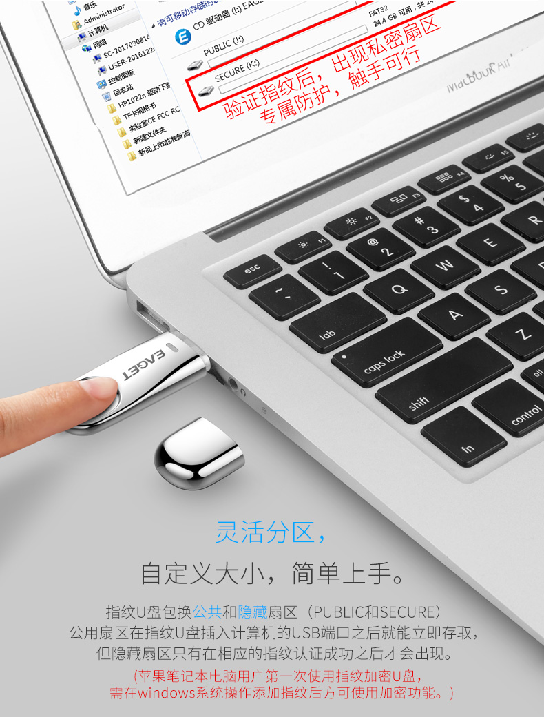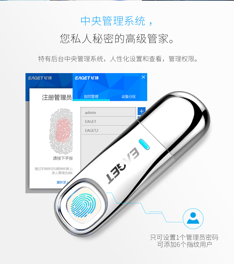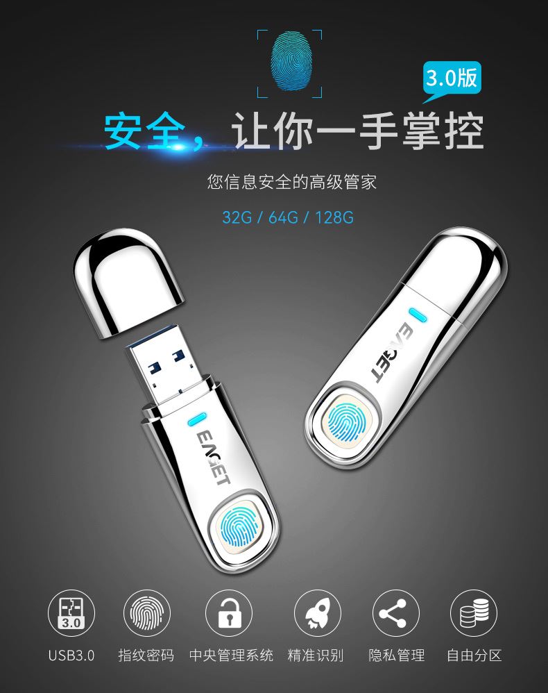 (EAGET)忆捷FU60指纹加密U盘防泄密全盘加密64GB