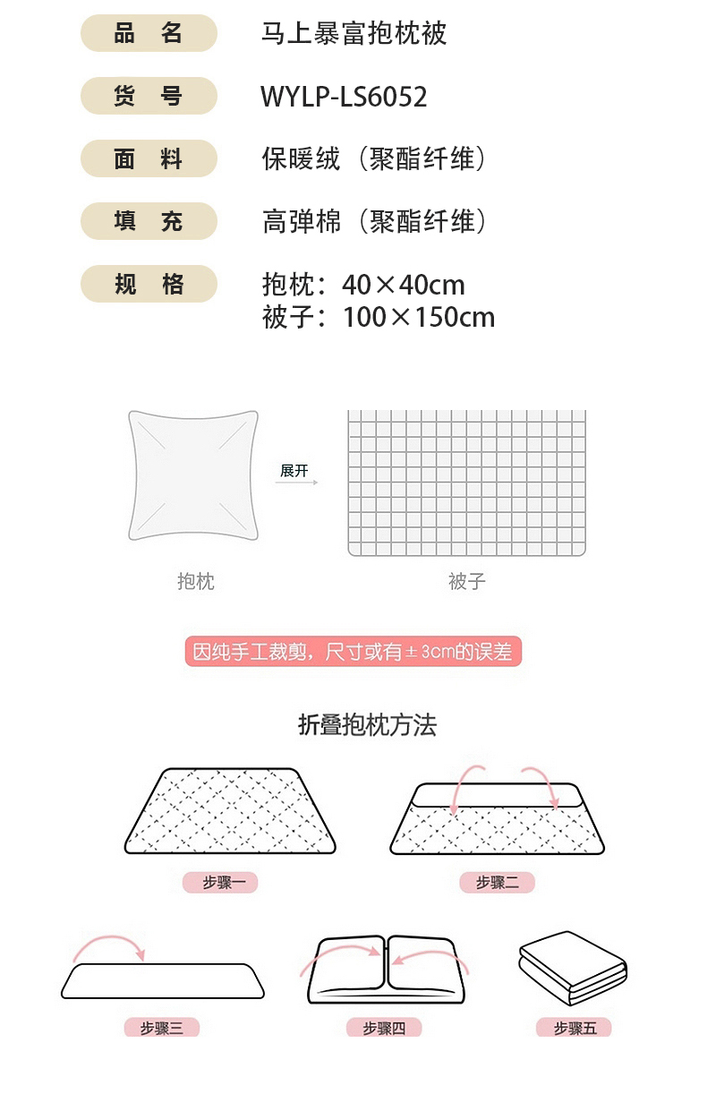無印良品马上暴富抱枕被WYLP-LS6052