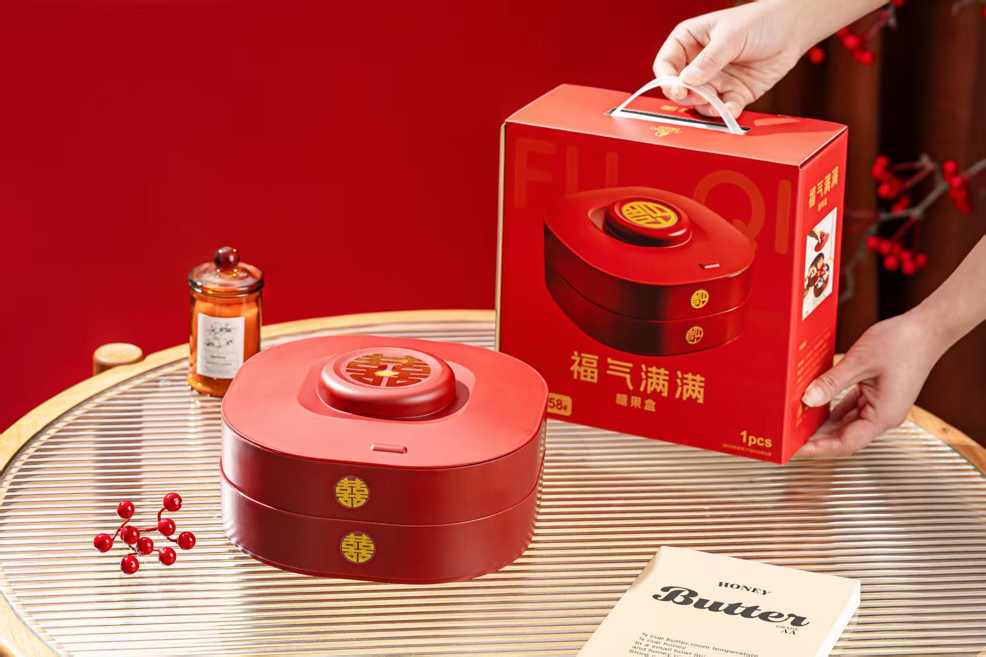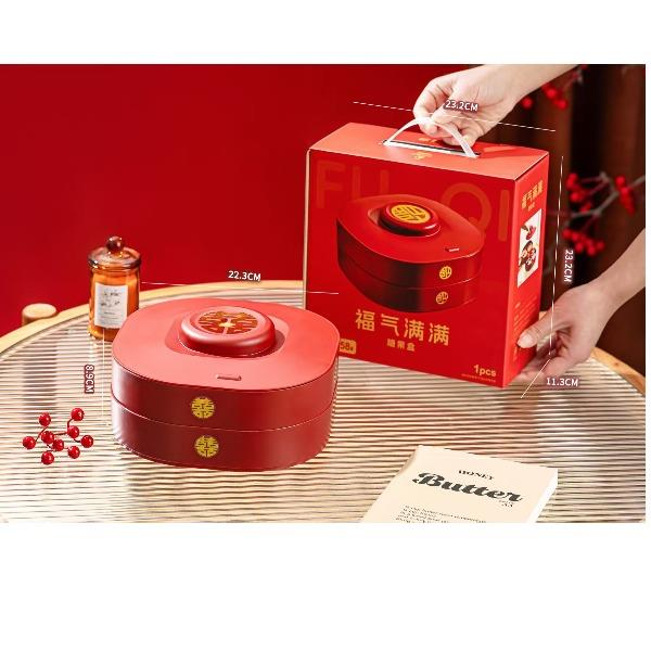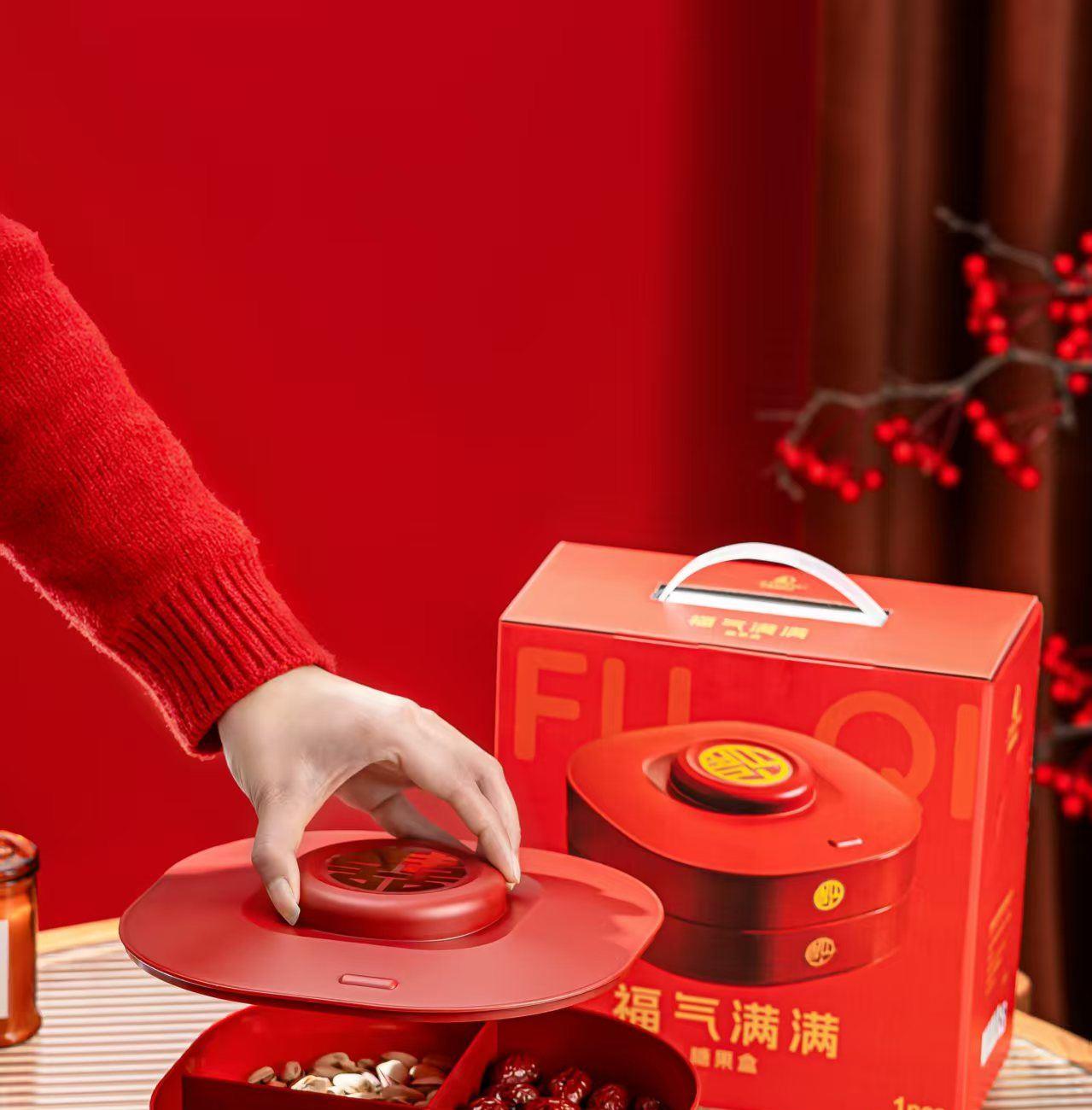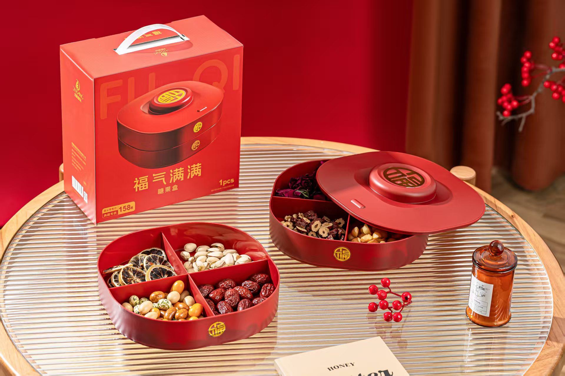 货号:FQMM-L1 配置:糖果盒 尺寸:口径CM/宽CM/高CM 材质:PP 彩盒:23.2*23.2*11cm 外箱:71*48*49CM 规格:1*24套 重量:12KG 69码:6970329771759 产品特点: “福气满满糖果盒” 以糖果的甜蜜美好结合“福气满满” 的吉祥祈愿为核心,将实用的收纳功能与中式传统福文化融合,既承载了对生活甜甜蜜蜜、福气萦绕的美好期许,也因高颜值和吉祥寓意成为兼具实用性与仪式感的物件,是福文化在日常与节庆场景中的具象化表达。