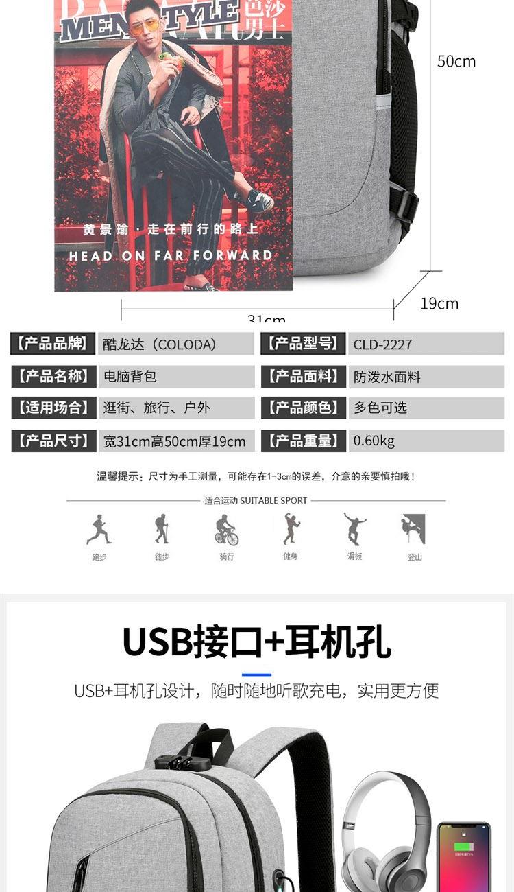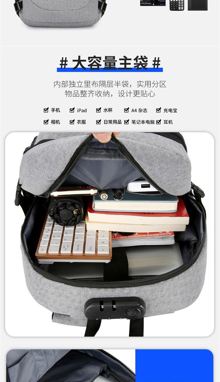 材质:300D涤纶防泼水 重量:0.6kg 尺寸:50*31*19cm 颜色:黑/灰