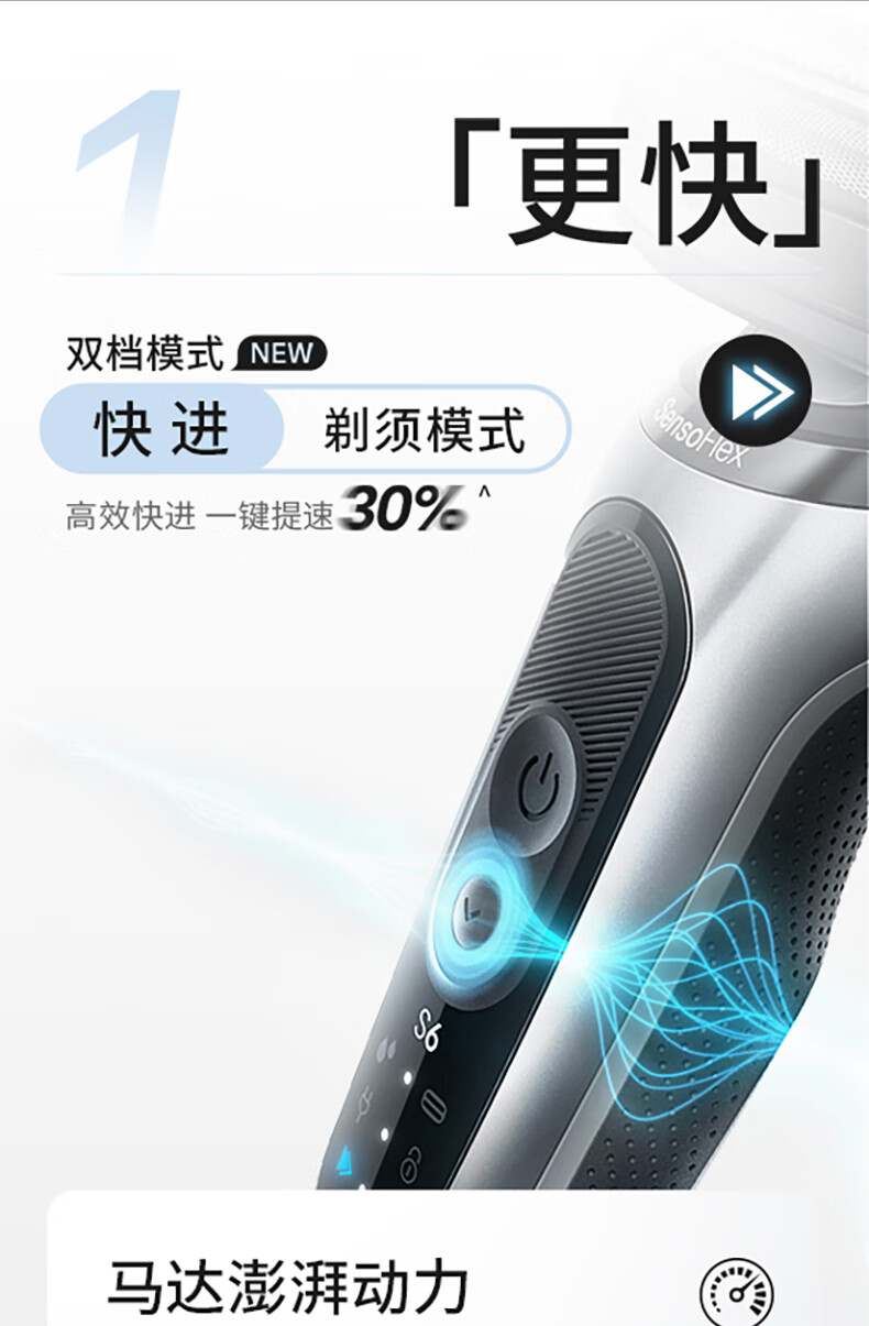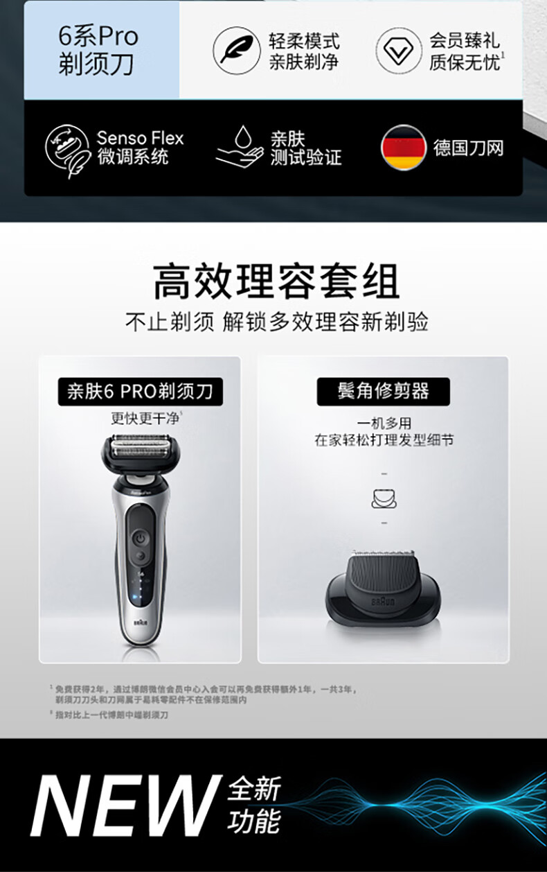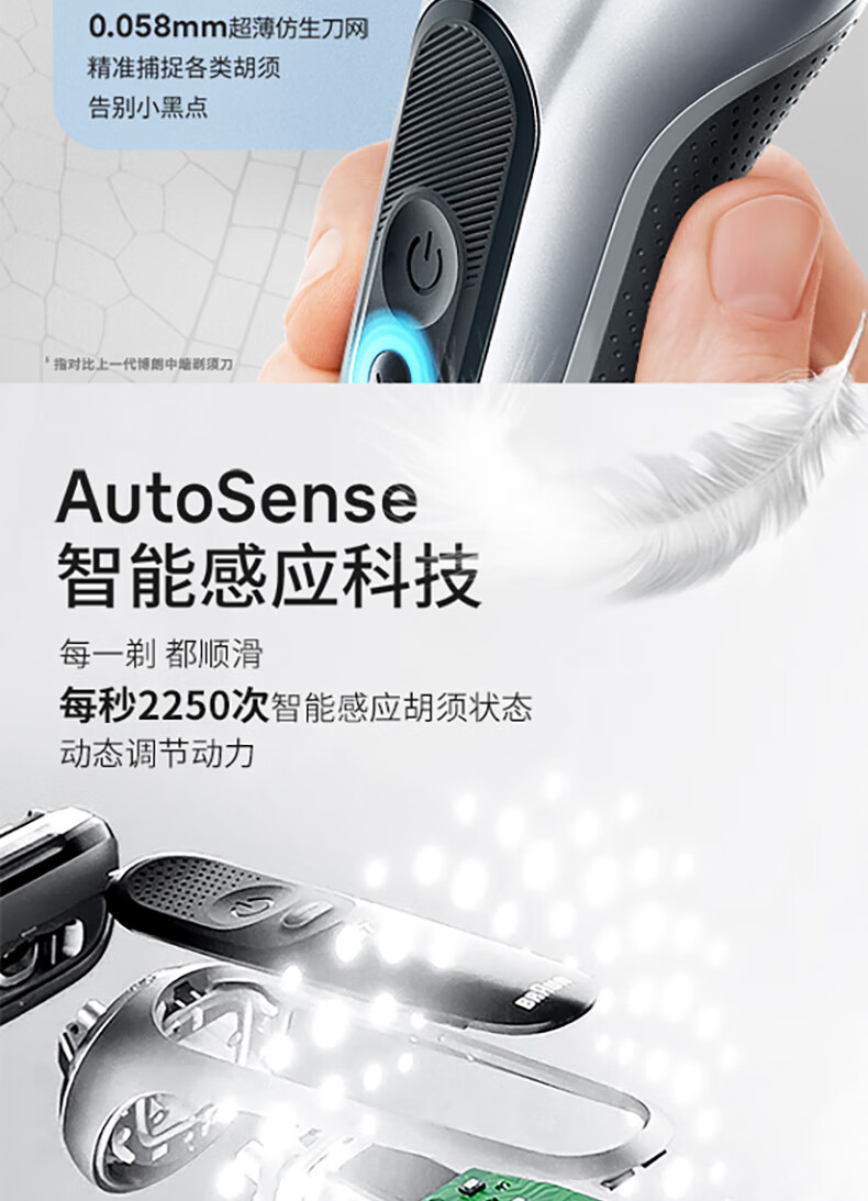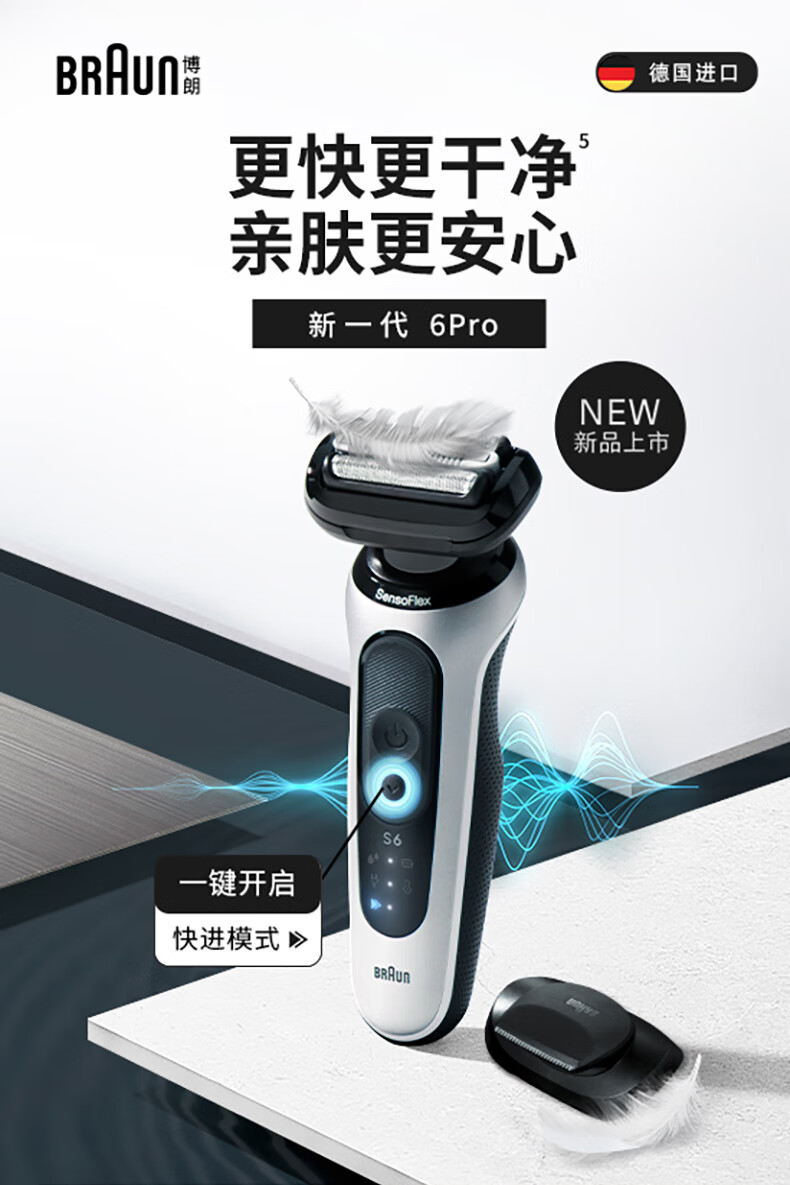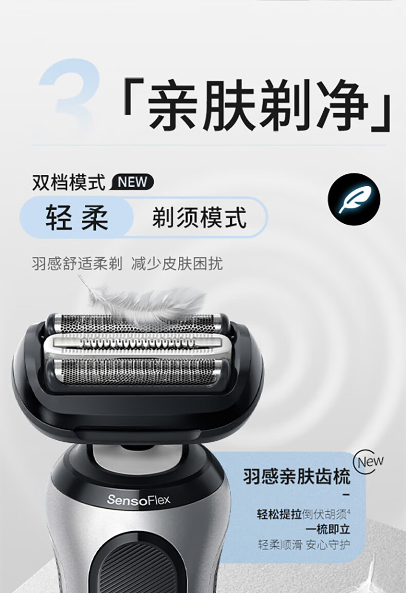 商品毛重:400.00g 商品产地:德国 刀头数量:3个 清洗方式:全身水洗,刀头水洗 续航时间:45-60分钟 充电时间:1小时快充 产品尺寸:长117mm;宽98mm;高231mm