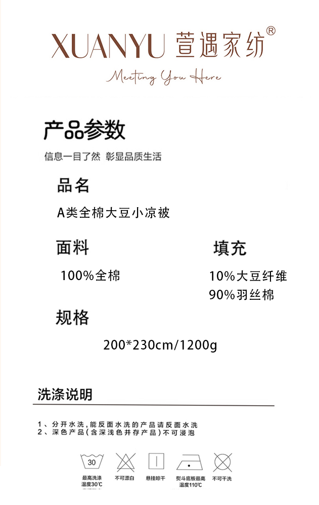 萱遇家纺A类全棉大豆小凉被X-B8007