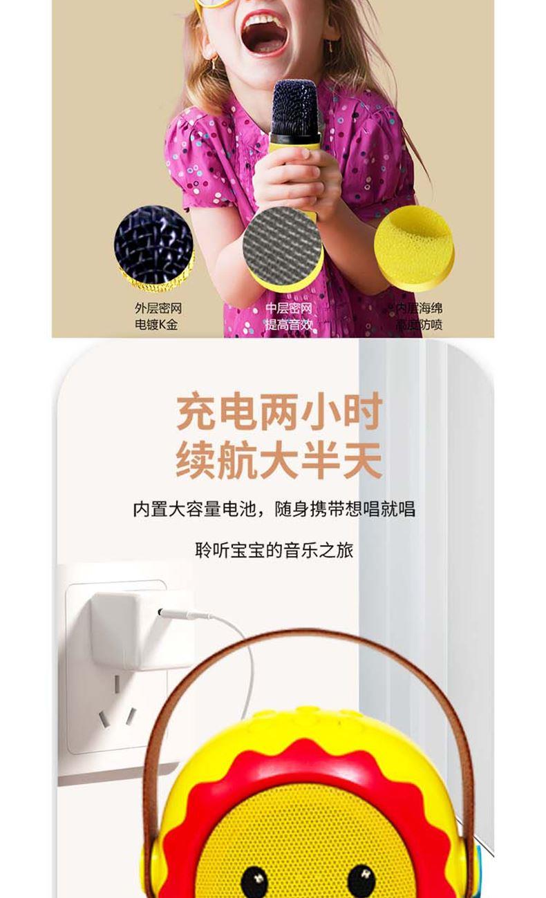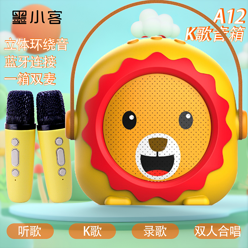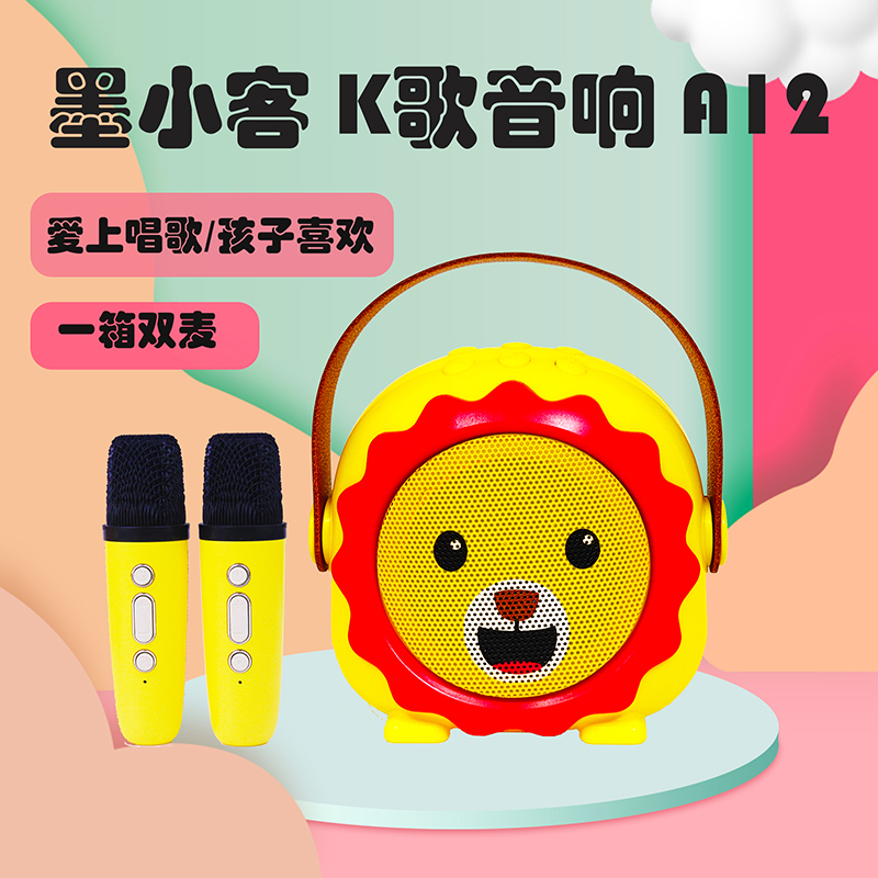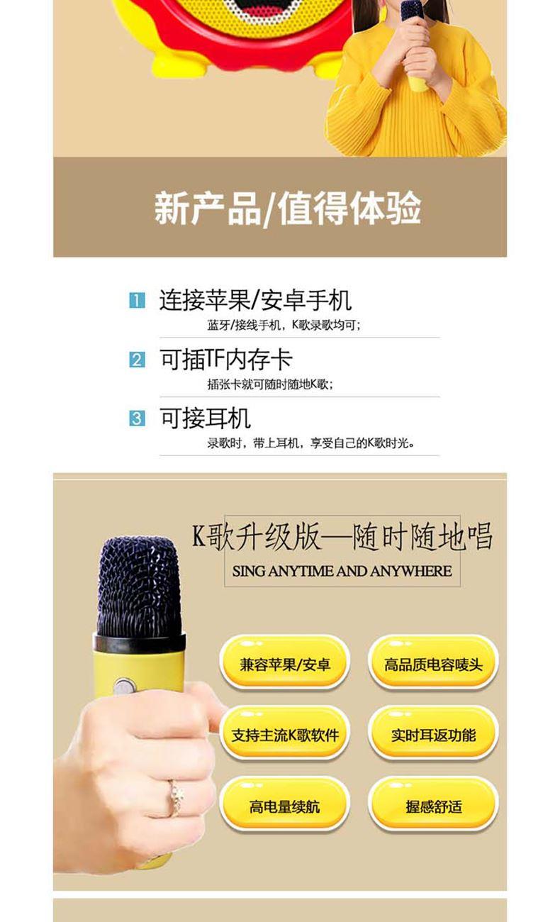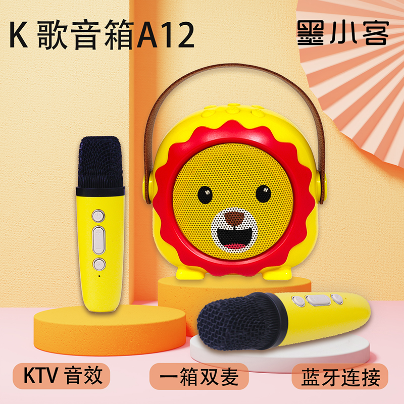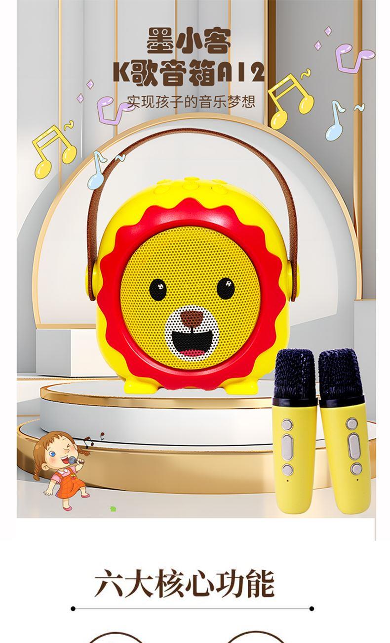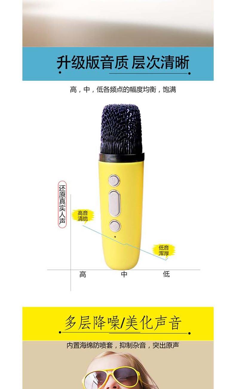 电池容量:1800mAh 产品重量:285g/490g 产品尺寸:9.5*7*9.5cm 彩盒尺寸:14*14*7.5cm 产品条码:6971070040675 产品特点 大动圈喇叭高保真音质,立体环绕音 蓝牙连接,智能兼容苹果、安卓系统 配背极式电容麦,内置DSP芯片,智能防啸叫 一箱双麦轻松便携