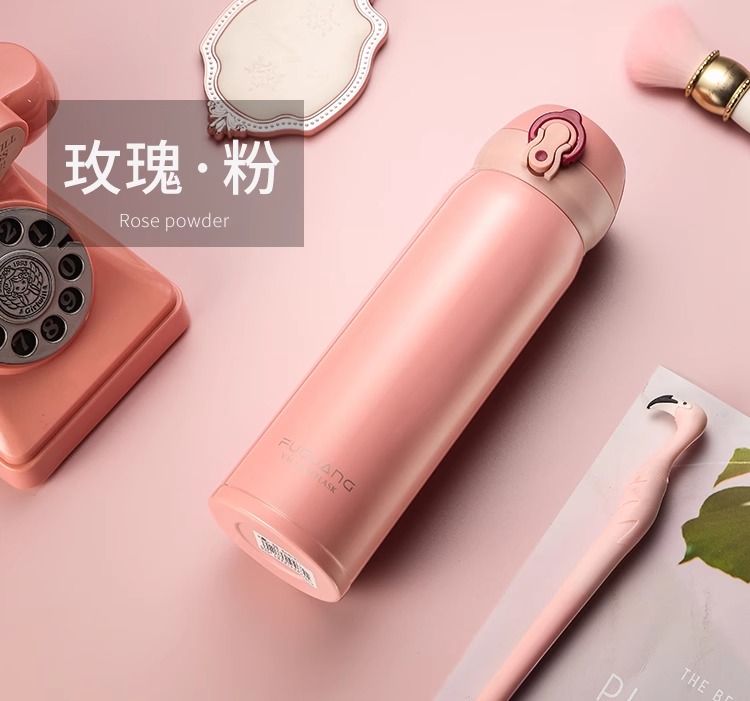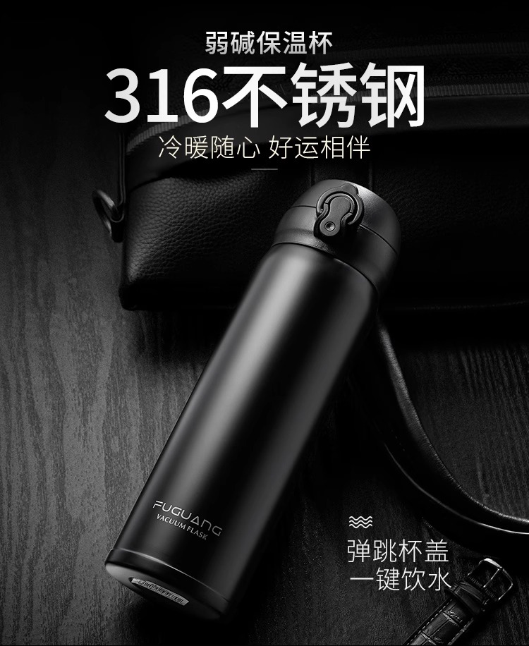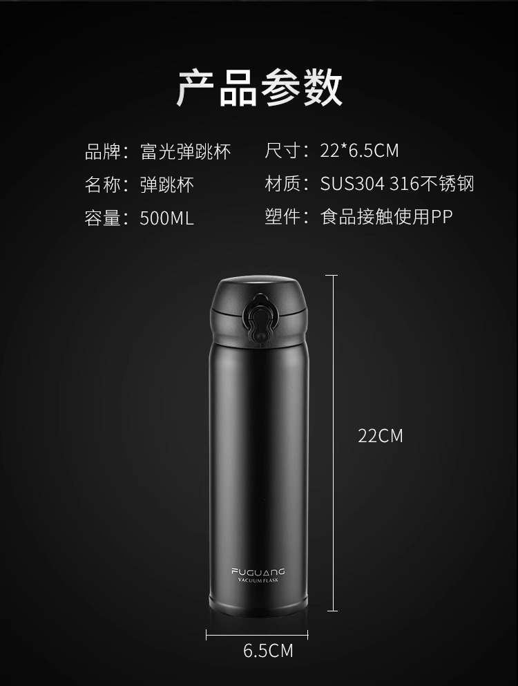 容量:500ml 尺寸:220mm*65mm 重量:215g 颜色:黑色,酒红色,粉色,蓝色,白色(纯色) 材质:316不锈钢内胆,双层不锈钢无尾抽真空 包装:单瓦盒