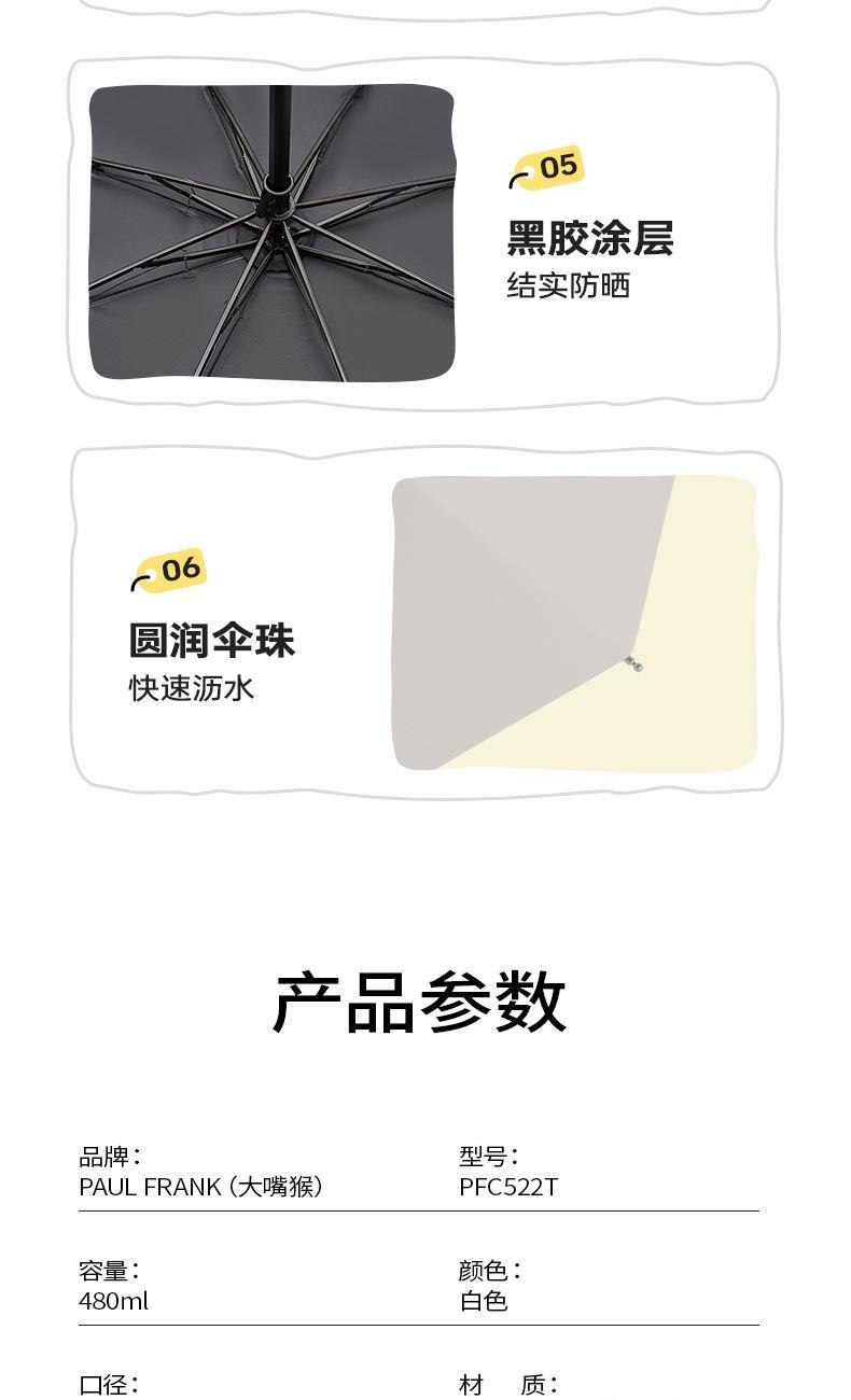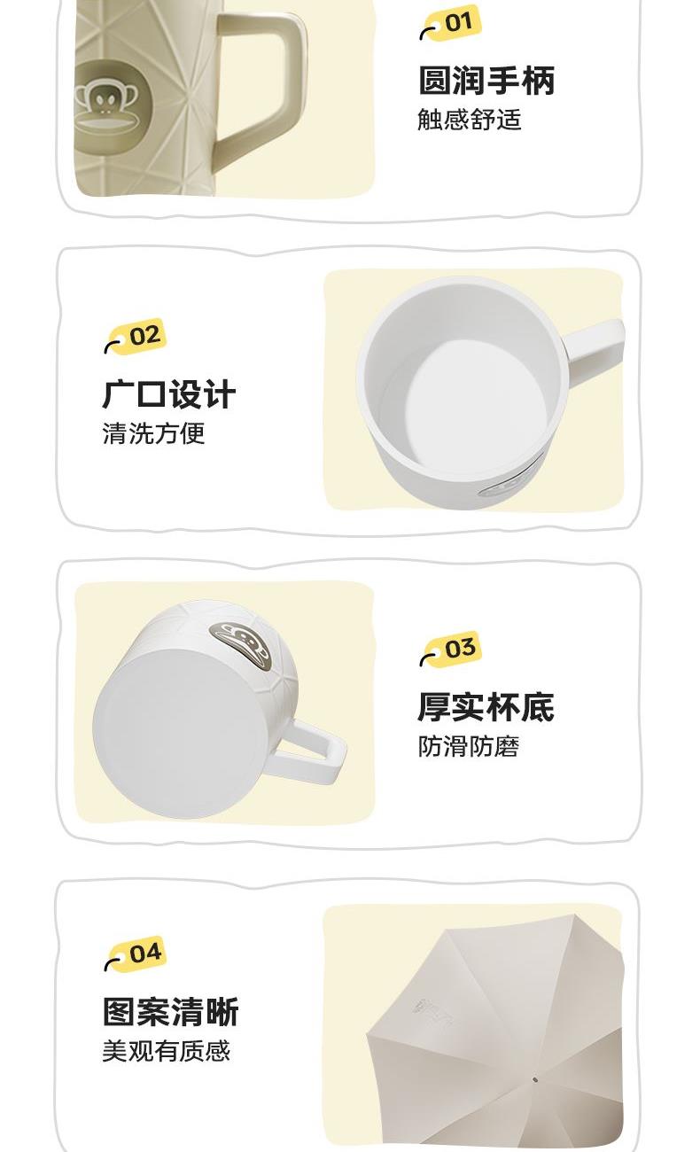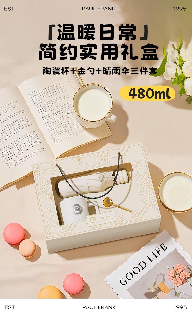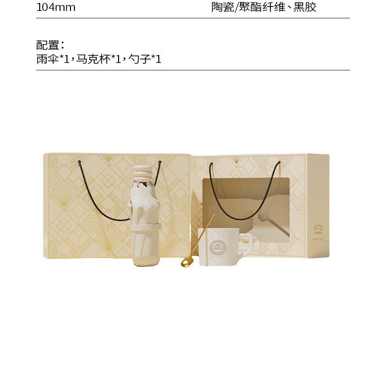 型 号:PFC522T 颜 色:白色 材 质:陶瓷/聚酯纤维、黑胶 产品配置:雨伞*1,马克杯*1,勺子*1 容 量:480ML