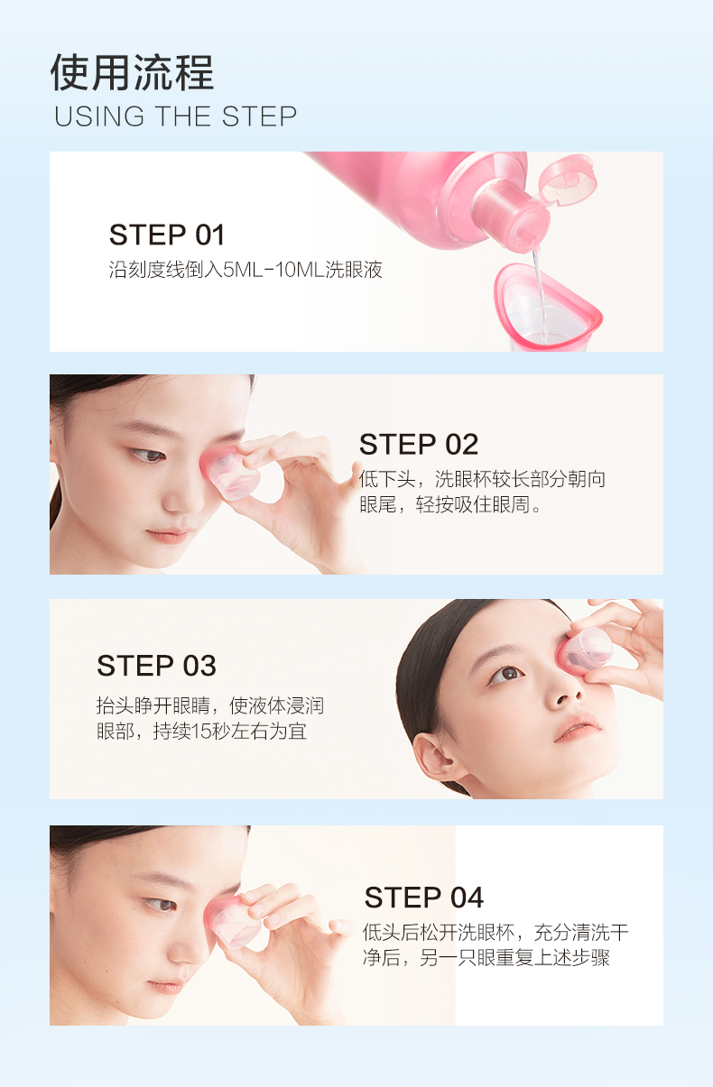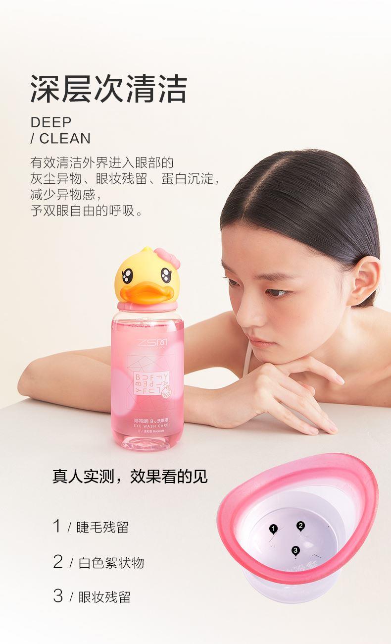 500ml 1.深层清洁眼部灰尘、眼妆残留、蛋白沉淀等异物。 2.添加维生素B12、海藻糖、牛磺酸等营养成分,水润滋养眼部 3.pH值、渗透压接近泪液,温和洗眼,不刺激眼睛。 4.两种清凉度可选,自由选择合适的清凉度。 5.小黄鸭外包装升级,解鸭加倍