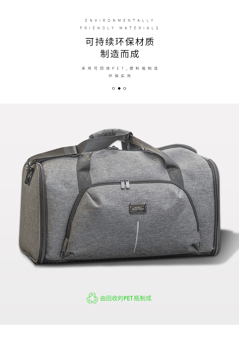 1、这款行李袋由13个回收塑料品瓶巧妙制成♻♻♻,是您的多功能旅行必备品。 2、一体化的服装套让你的服装在任何场合都保持整洁。 3、无论你是坐飞机还是去健身房,这款多功能包都能满足你的旅途需求的 4、尺寸:520 x 290 x 280毫米