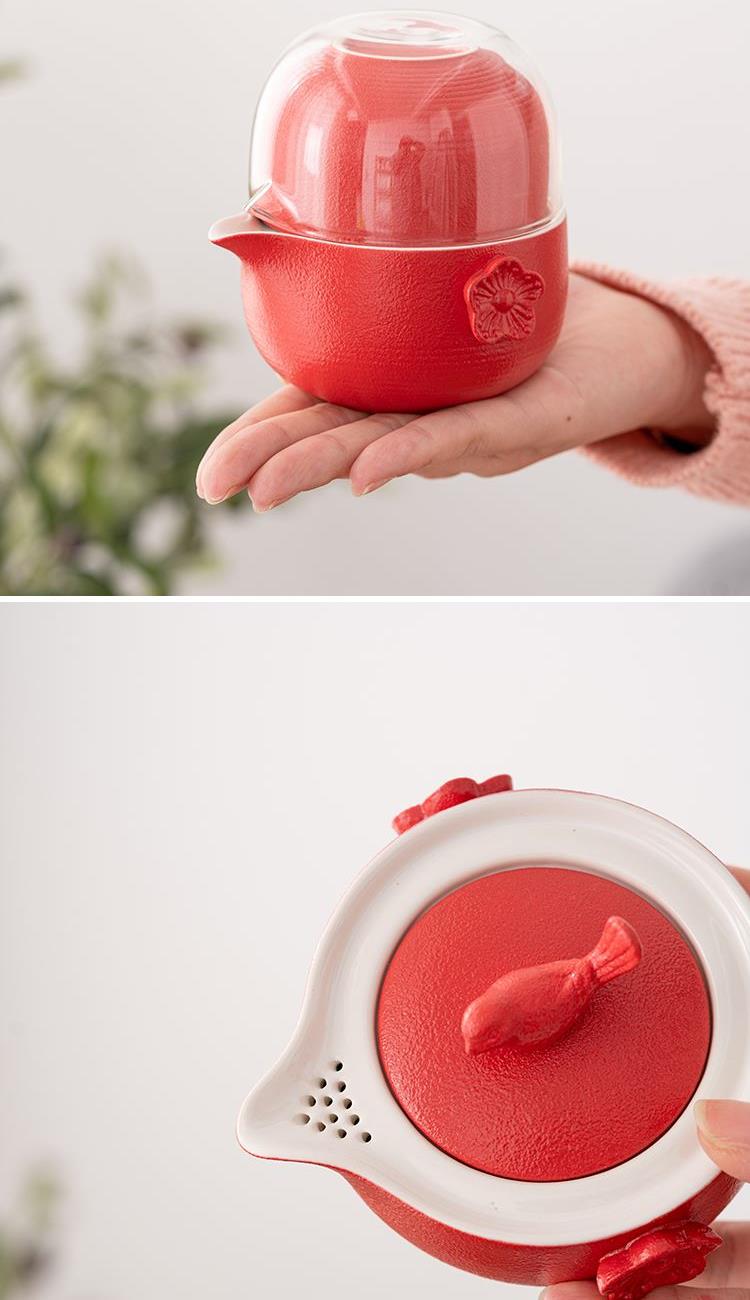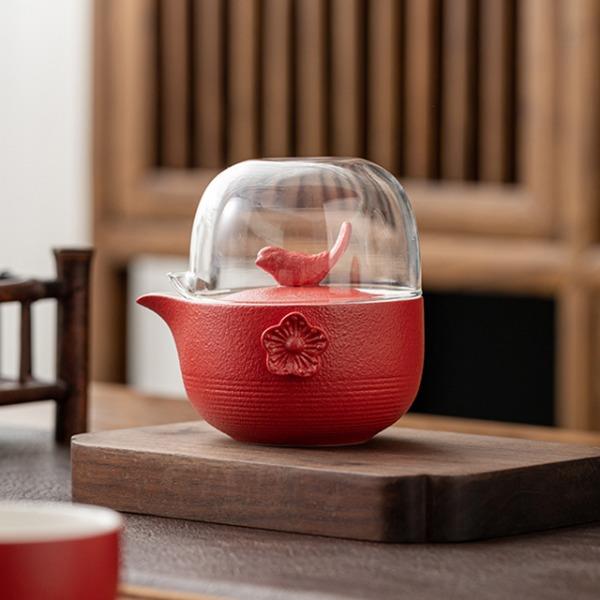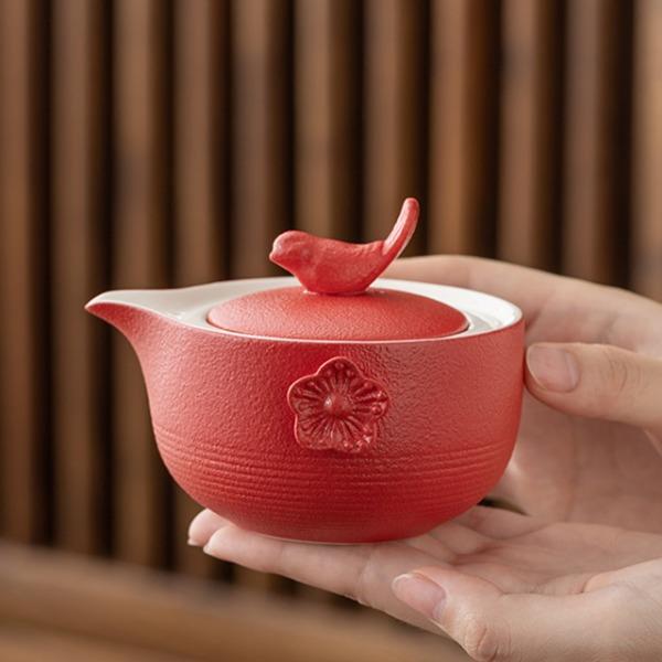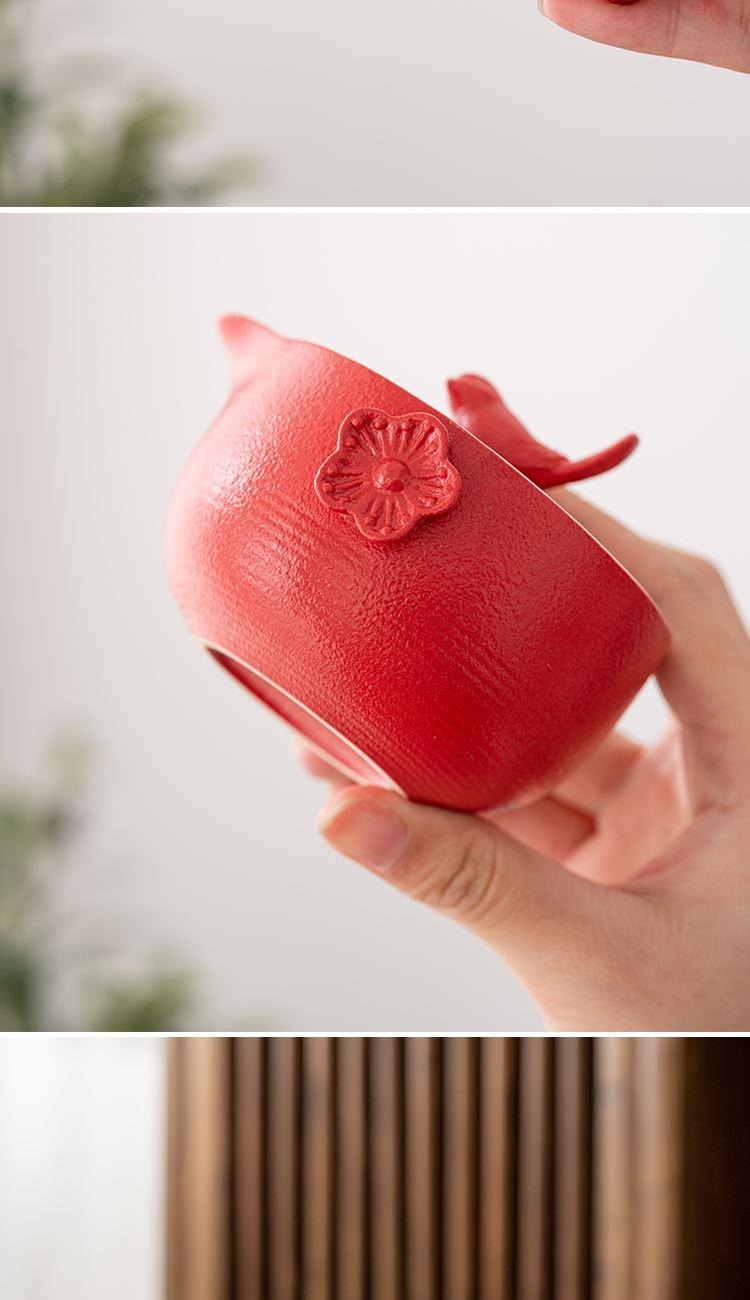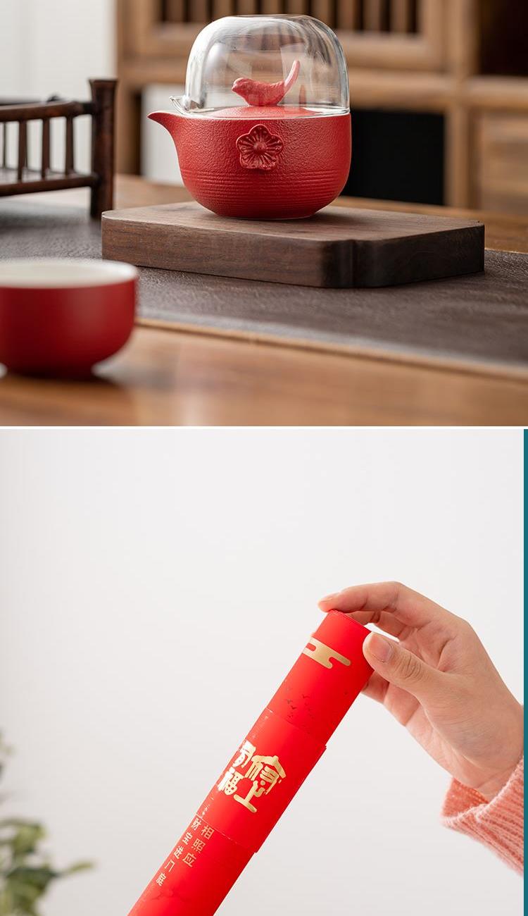 设计理念:中国传统习俗上,喜鹊被认为是一种报喜的吉祥鸟,它的到来,必有喜事到。喜鹊落在梅枝上,形容喜事临门,幸运吉祥。中国民间多以喜鹊喻喜庆之事,“梅”与“眉”又同音,故又作“喜上眉梢”,描述人逢喜事,神情洋溢的样子。因此“喜鹊登梅”是中国民间为喜闻乐见的吉祥喜庆图案。 产品配置:喜鹊茶壶*1、陶制主人杯*1、陶制客杯*1、高硼硅玻璃公道杯*1、小罐装茶*5(赠)、对联*1、年年有余礼盒、礼袋