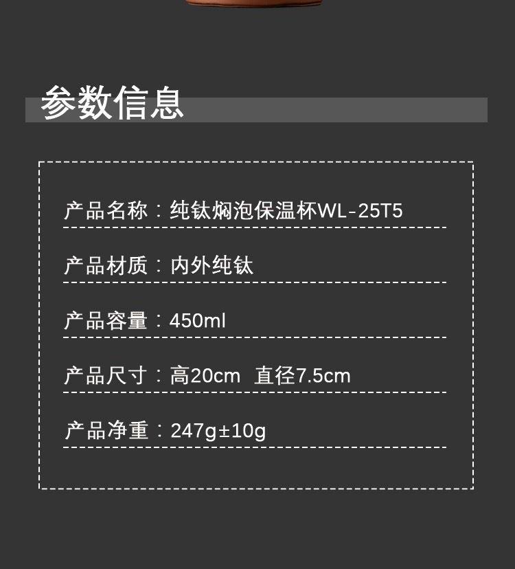 威诗兰纯钛焖泡保温杯(99.9%)WL-25T5