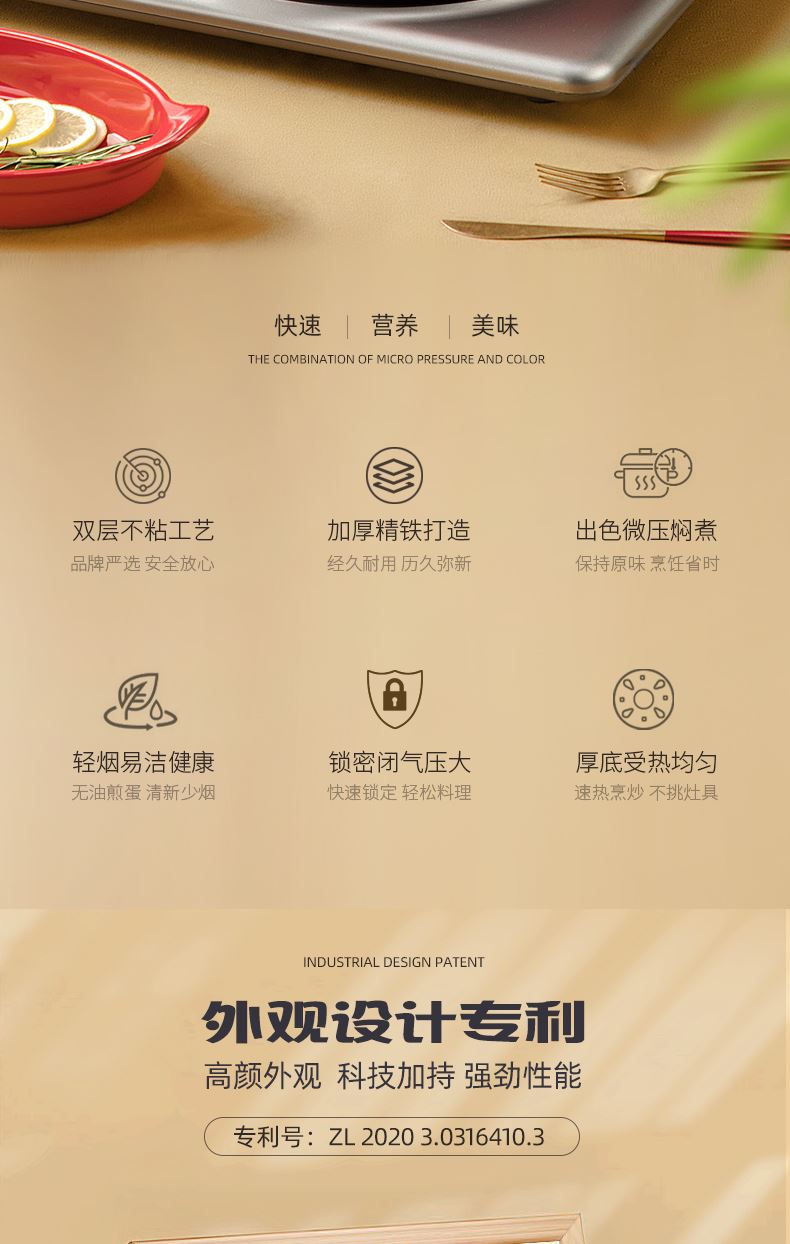规 格:22cm汤锅 材 质 :精铁+麦饭石不粘涂层 产品为精铁麦饭石高温熔喷工艺,具有不沾效果而且少油烟。汤锅22公分口径加厚锅身防滑锅底;配可视防爆浮法加厚玻璃。锅具适合所有炉具。