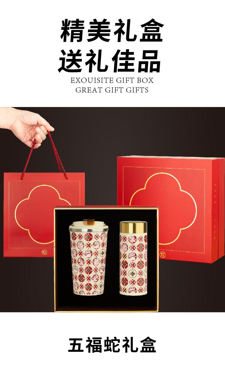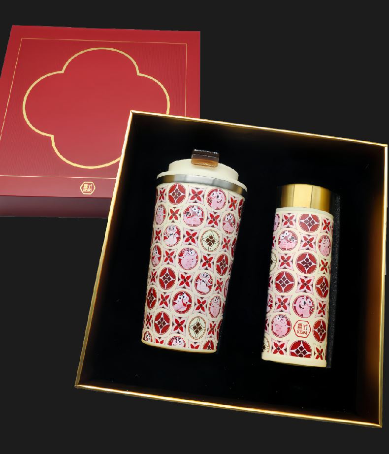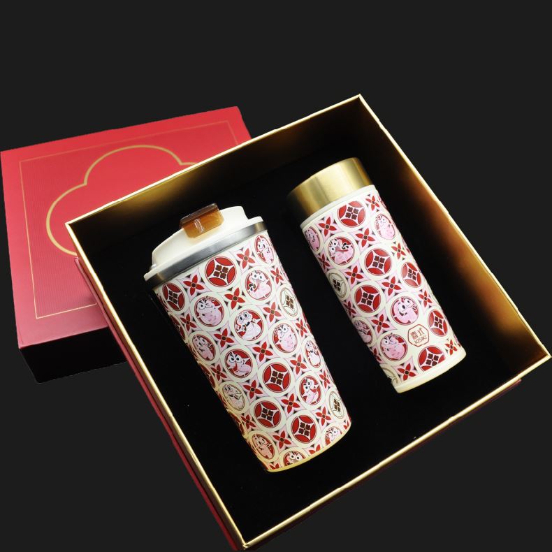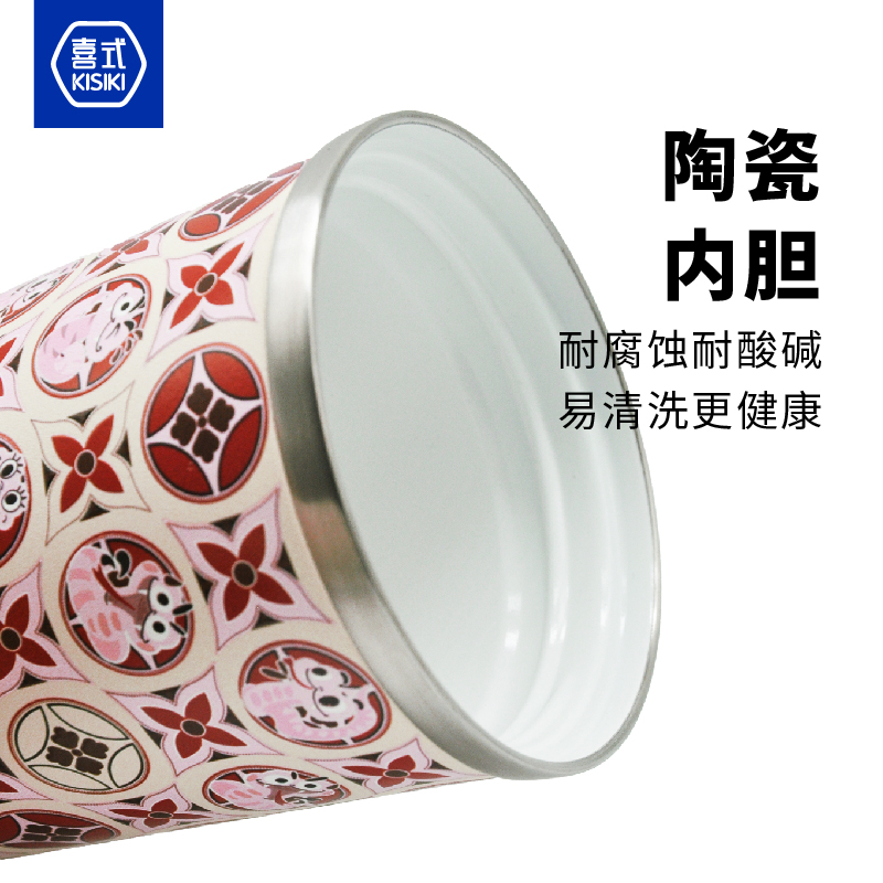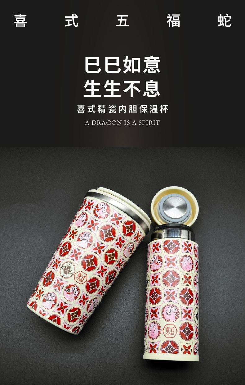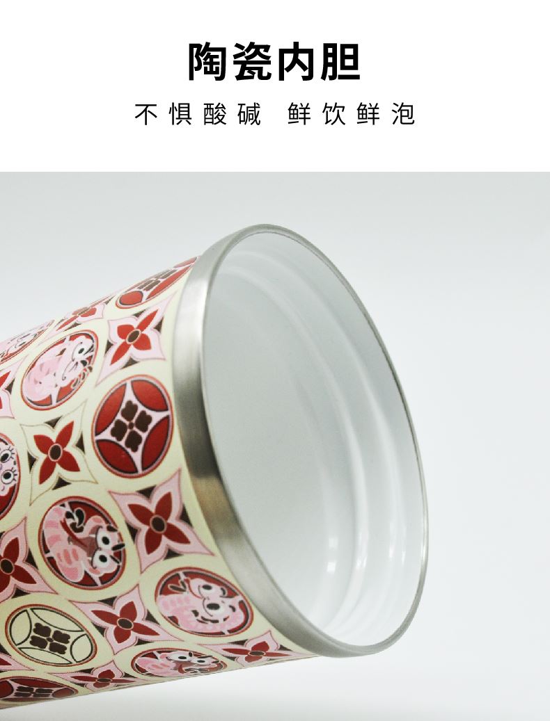 喜式陶瓷内胆保温杯咖啡杯-马上发财礼盒