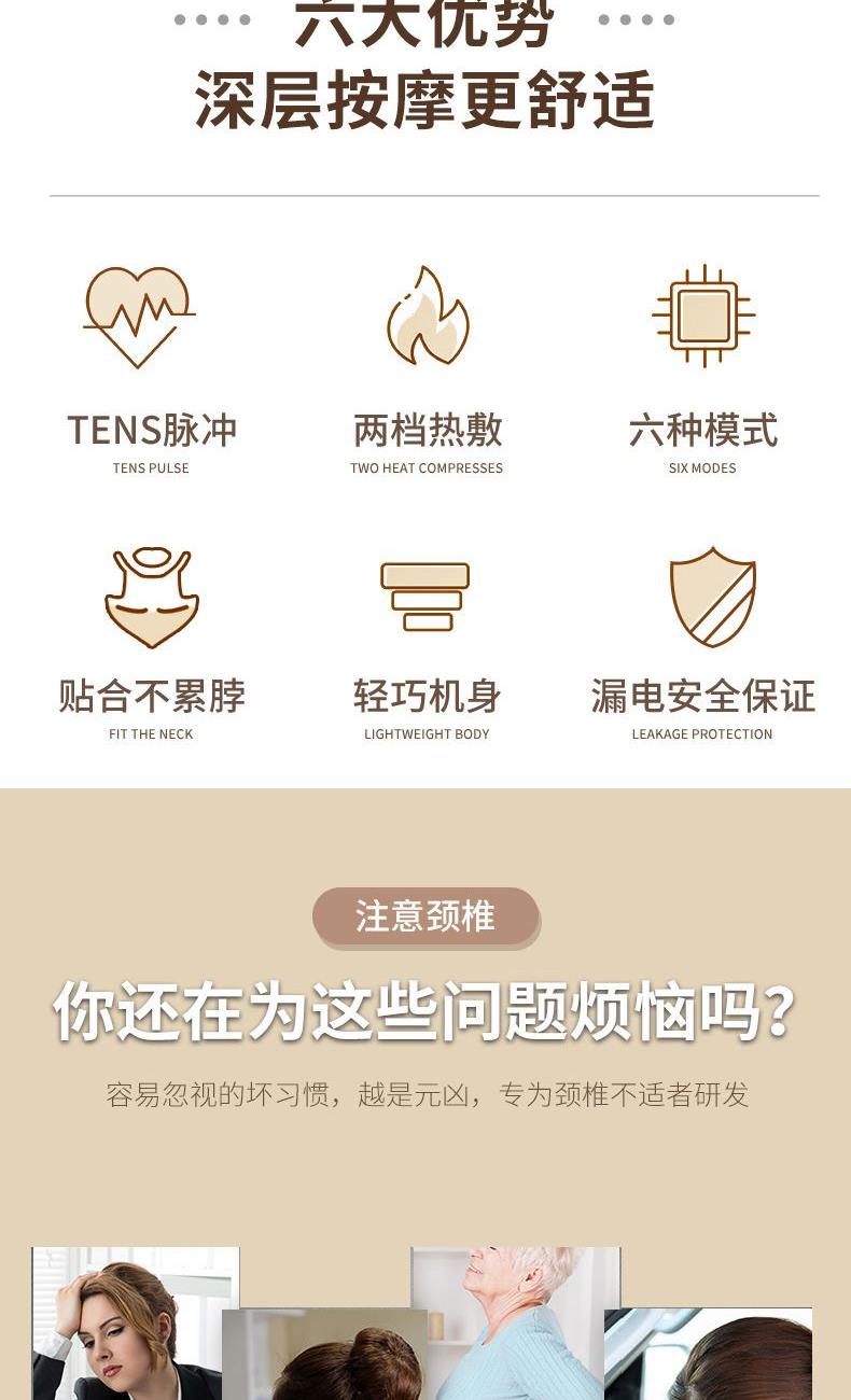 采用人体工程学设计,符合人体颈部曲线,贴合颈部,智能识别人体皮肤