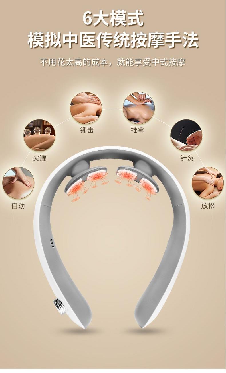 6种模式可选(自动组合模式,火罐模式,锤击模式,推拿模式,针灸模式,放松模式)