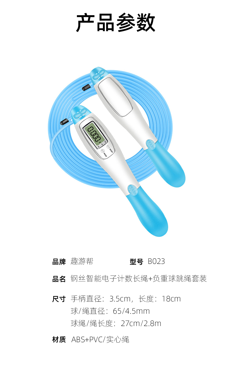趣游帮智能电子计数长绳+负重球跳绳套装(B023)
