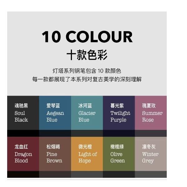 型号:灯塔系列墨水笔 类型:螺纹上墨式墨水笔 重量:墨水/宝珠笔43g/47g 颜色分类:微光橙凛冬灰橄榄绿爱琴蓝龙血红魂驰黑 书写粗细:F尖 套餐类型:官方标配 包装方式:鸿运笔记本礼盒装 适用场景:送礼书写钢笔 笔尖成分:铱金笔 笔尖种类:标准型 适用人群:商务办公人士 上墨方式:旋转吸墨 笔杆材质:金属笔尖 嵌入方式:明尖 笔身纹理:格子纹 墨水材质:非碳素墨水