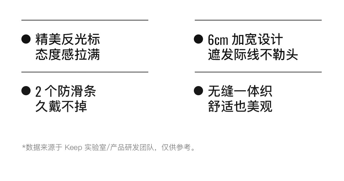 头围:54-58cm 材质:锦纶、氨纶 重量:20g(约1节5号电池) 2个硅胶防滑条,3A级kang菌,反光标语