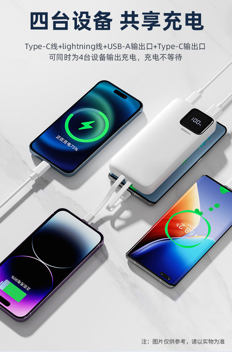 可同时为4台设备输出充电,充电不等待