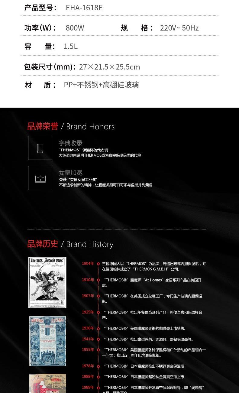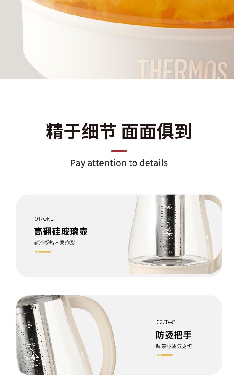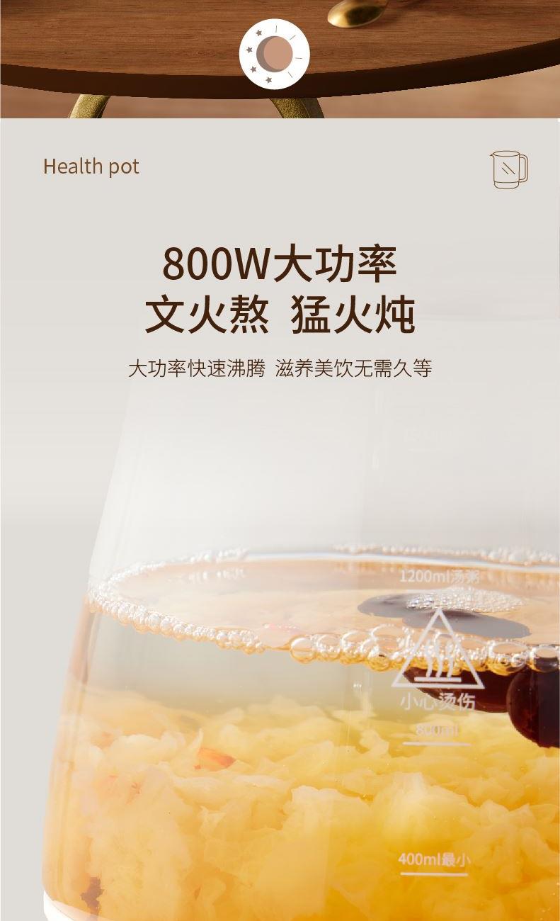 产品材质: PP+SUS304不锈钢+清光高硼硅 产品参数:额定功率:220V~50Hz 800W 产品容量:1.5L 包装尺寸:彩盒 :280*215*260 单产品重量:0.97Kg 含彩盒重量:1.3Kg 产品介绍: 1.16大菜单承包润养日常 2.1.5升容量独享分享都合适, 3.发热盘密封技术不易卡食物残渣; 4.只留茶香,不见茶渣304不锈钢滤网